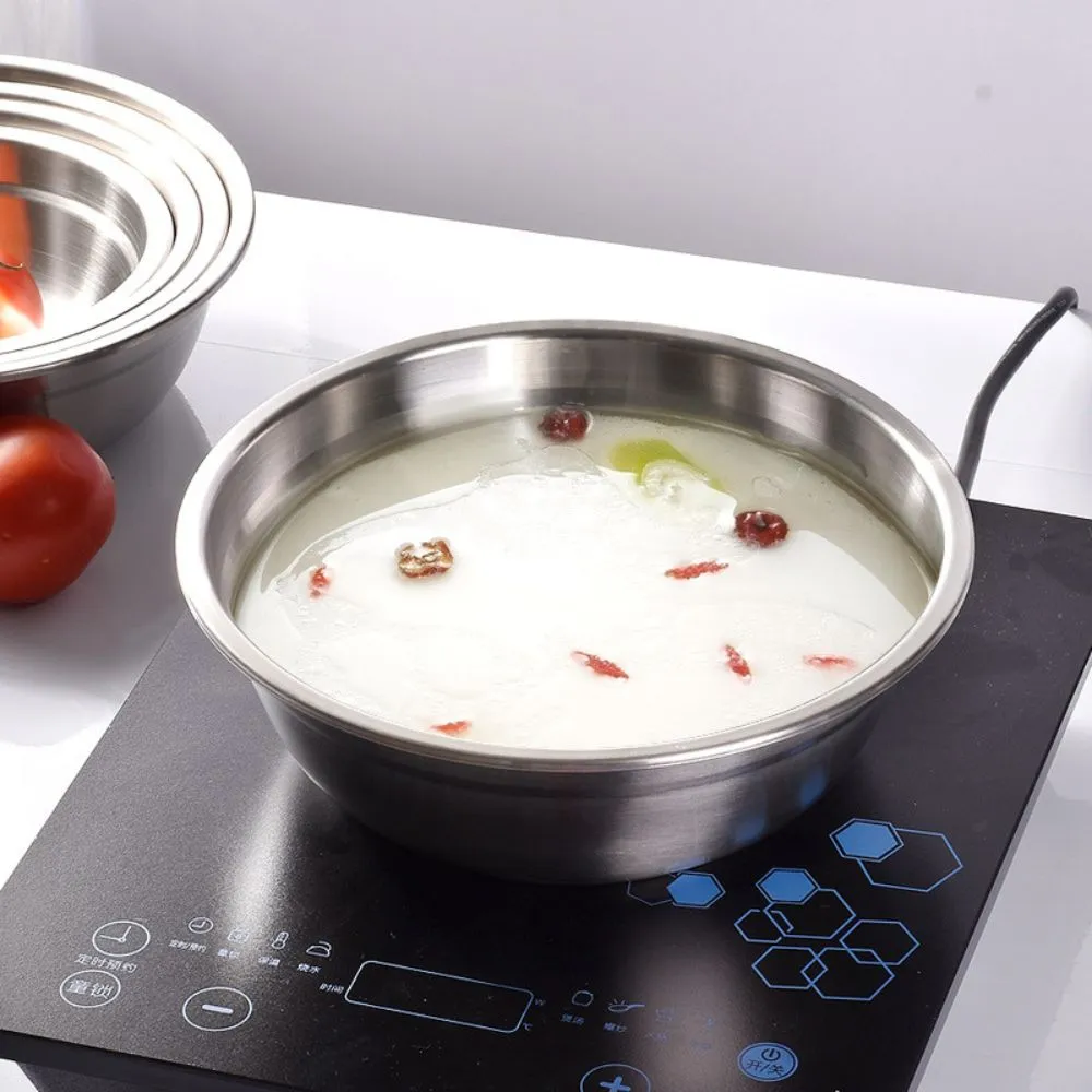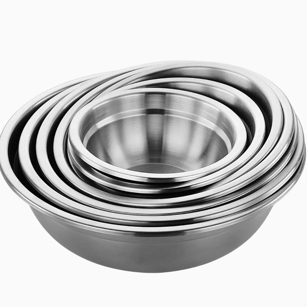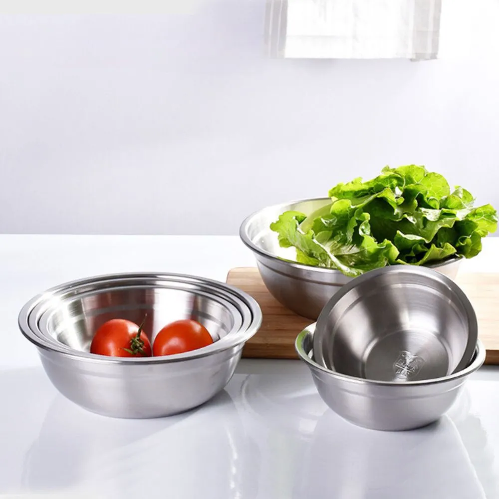 juego de tazones perfecto para preparar alimentos, mezclar ensaladas, batir huevos, servir bocadillos o palomitas de maíz, lavar verduras, guardar frutas y sobras. Cada cuenco está hecho de acero inoxidable de primera calidad diseñado para resistir abolladuras y a prueba de herrumbre. Presentan un acabado de espejo en el interior y un acabado cepillado en el exterior, que son atractivos y funcionales.