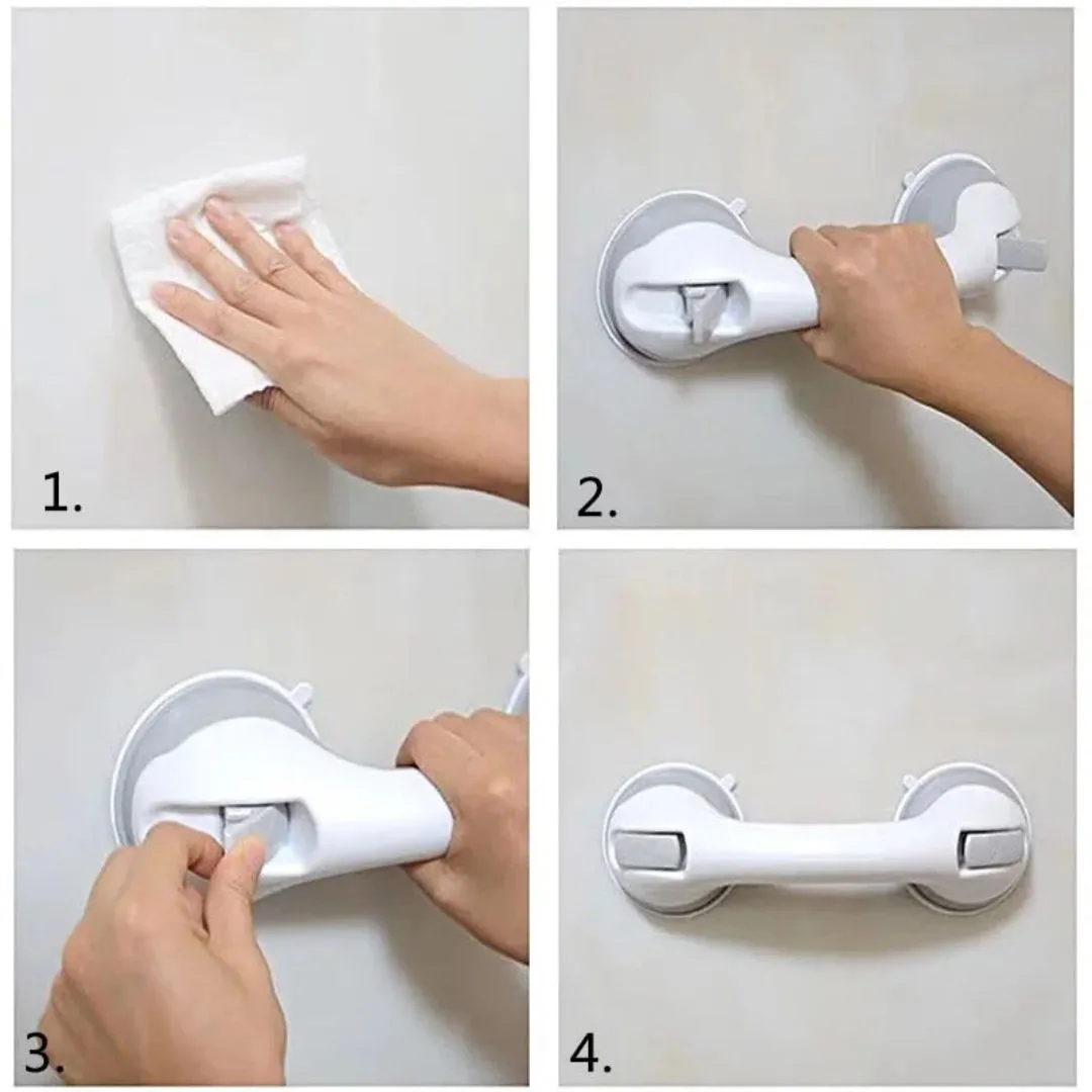 Agarradera de seguridad con ventosa se sujeta o adhiere a superficies planas y lizas como la pared en cerámica de tu baño.