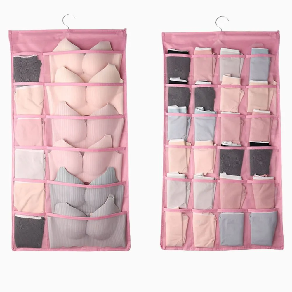 Bolsa colgante de almacenamiento de ropa interior, organizador ligero con rejillas, bolsa versátil para el dormitorio.