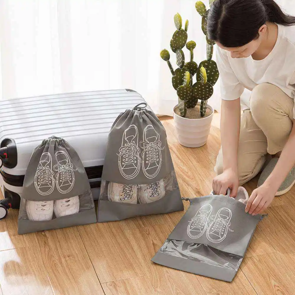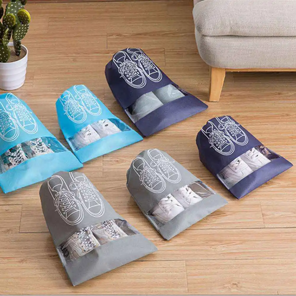 Bolsa de almacenamiento para zapatos no tejida, transparente, a prueba de polvo, a prueba de humedad, a prueba de moho, con cordón de viaje, bolsa para zapatos.