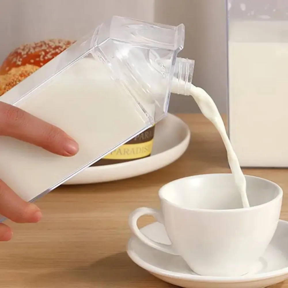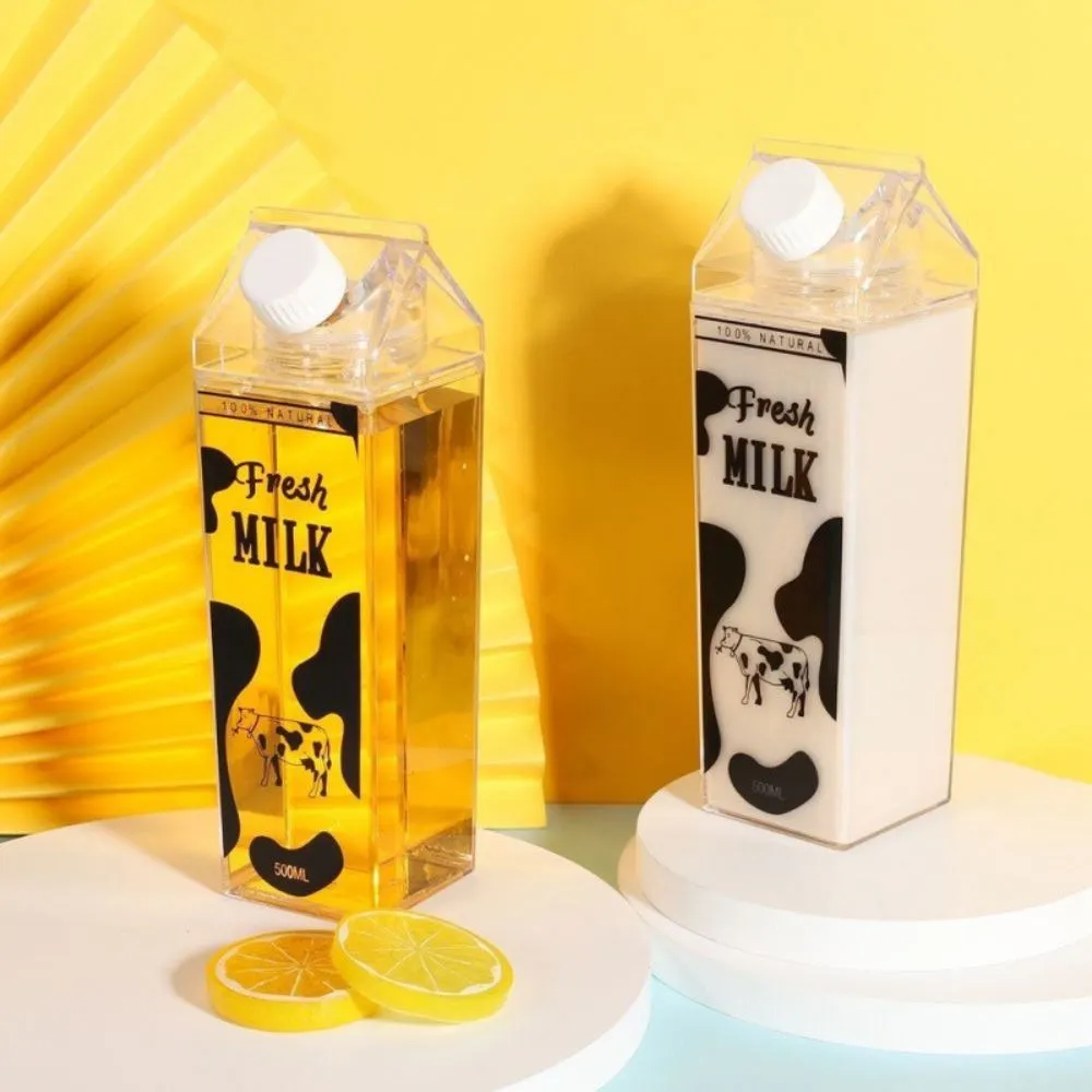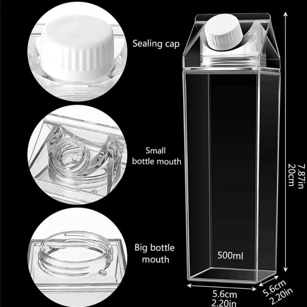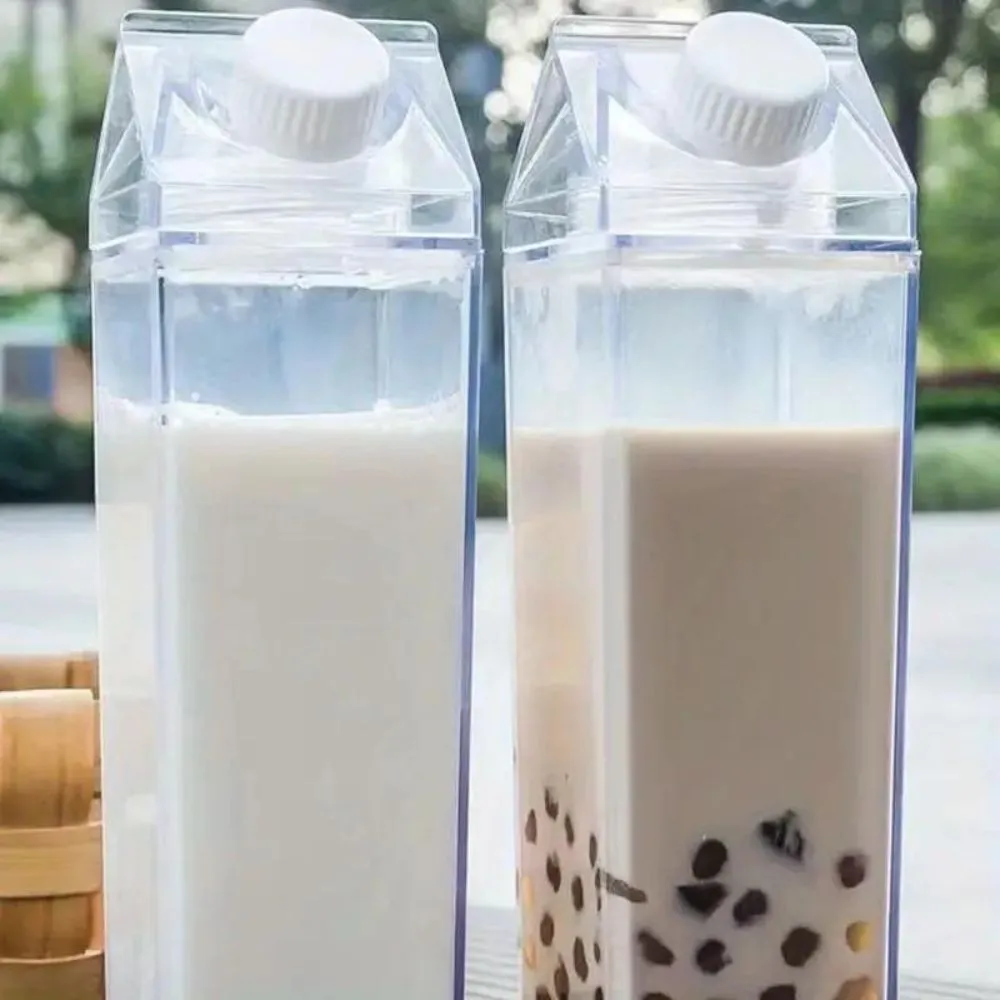 Botella para leche o Jugo Acrílico cuadrada sellada. Botella de plástico frescas para exteriores.