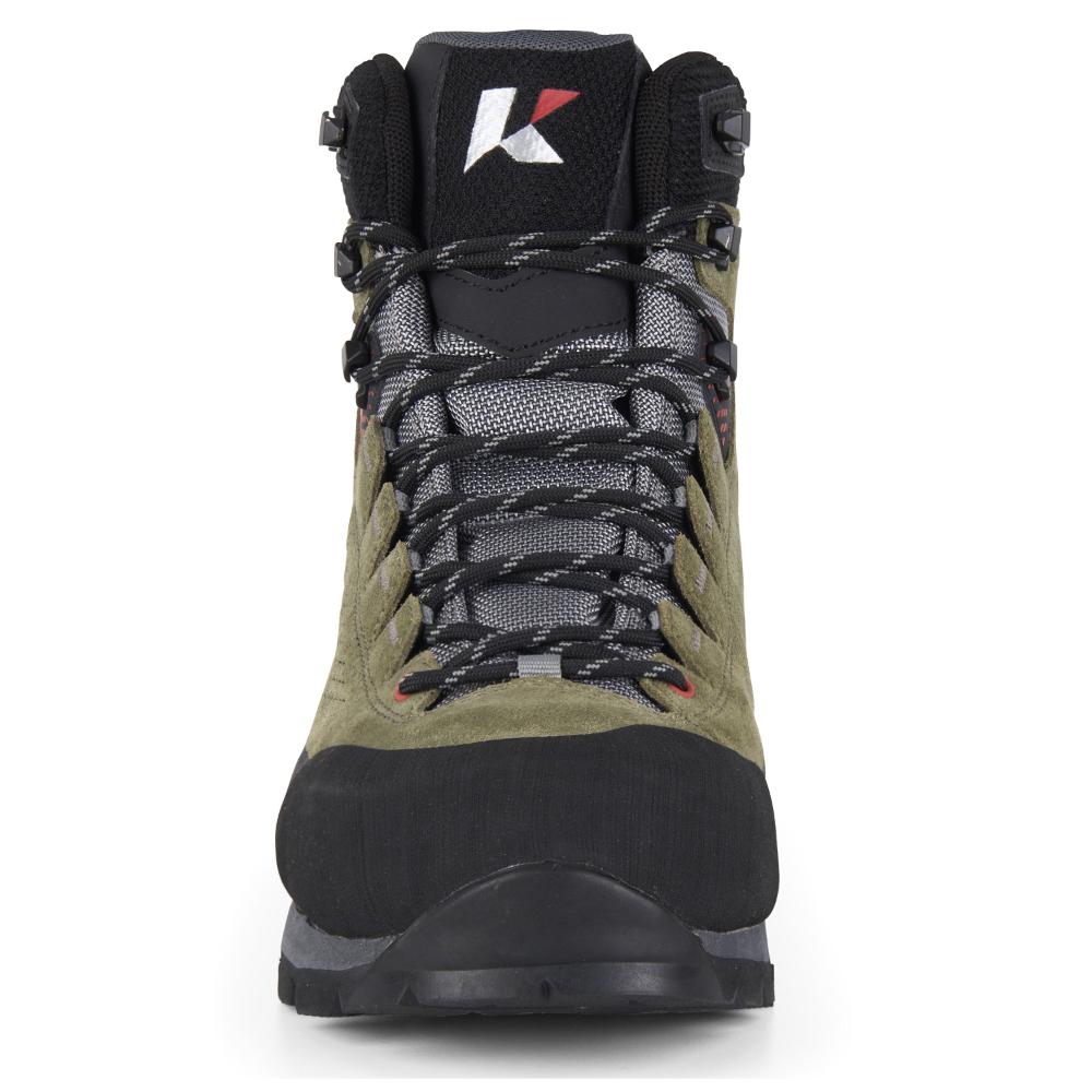 Grand Tour GTX es la nueva cara del senderismo de Kayland La suela, hecha exclusivamente para Kayland, es Vibram® Tork y tiene un teselado que le permite abordar los terrenos más desafiantes, mixtos o irregulares. La parte superior está hecha de gamuza con inserciones de microfibra para hacer que el zapato sea resistente y ligero. Grand Tour GTX hace de la ligereza y la protección sus piedras angulares. La puntera de goma y la banda lateral, unidas directamente a la parte superior, garantizan una protección absoluta contra la rugosidad del terreno en toda la zona central y delantera del pie y reduce significativamente el peso de la bota. El aislamiento de los agentes atmosféricos es proporcionado por la membrana Gore-Tex Extended Comfort y el tobillo se mantiene en su lugar por el sistema de bloqueo de tobillo de Kayland, que evita movimientos no naturales. El ajuste es suave y acogedor, gracias también al cuello de licra que acomoda el pie sin ningún punto de presión en el tobillo. El cordón es cómodo y cómodo, gracias al uso de pestañas que envuelven la suela y el empeine.