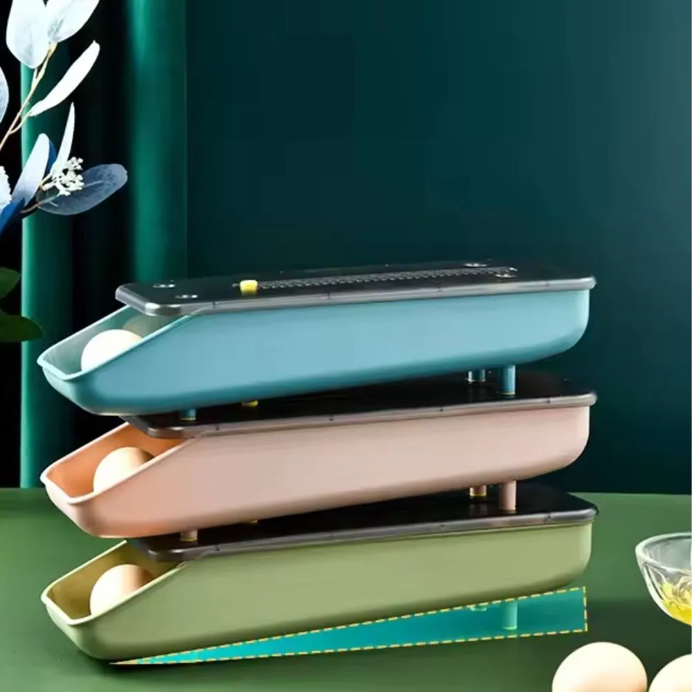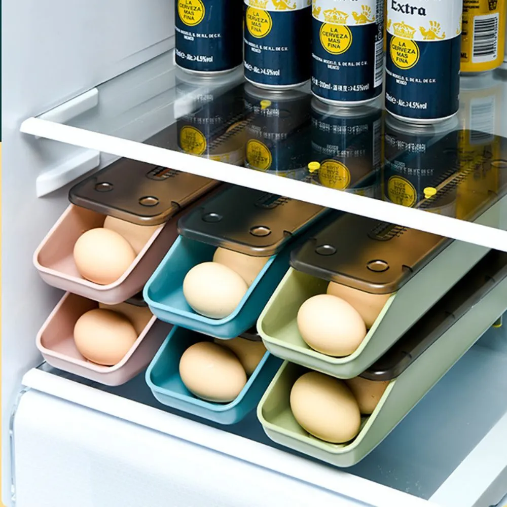 Caja de almacenamiento de huevos Apilable, Caja de almacenamiento de huevos tipo cajón, cocina, portátil, automático, rodante, refrigerador, artefacto, soporte para huevos, se puede apilar.