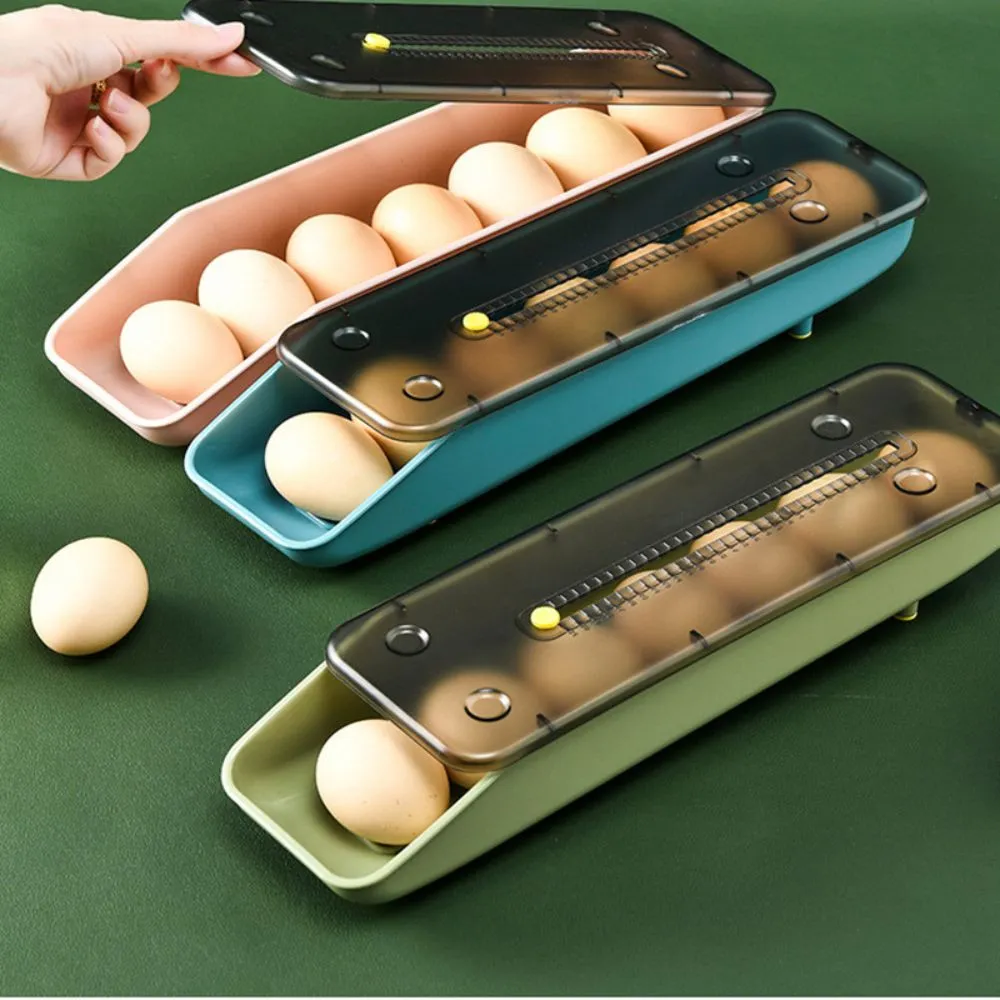 Caja de almacenamiento de huevos de plástico, contenedor rodante automático de superposición multicapa. Almacenamiento de huevos automática creativa portátil extraíble para ordenar la cocina caja de huevos enrollable.