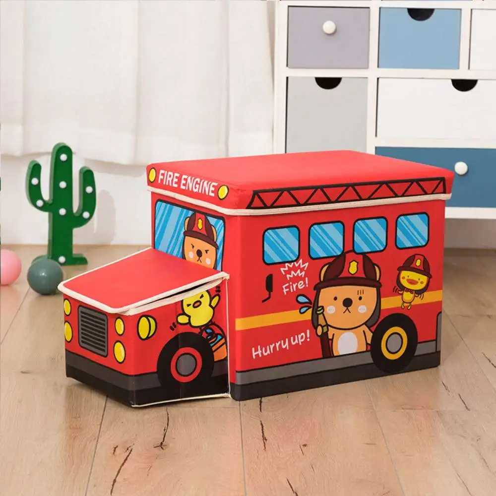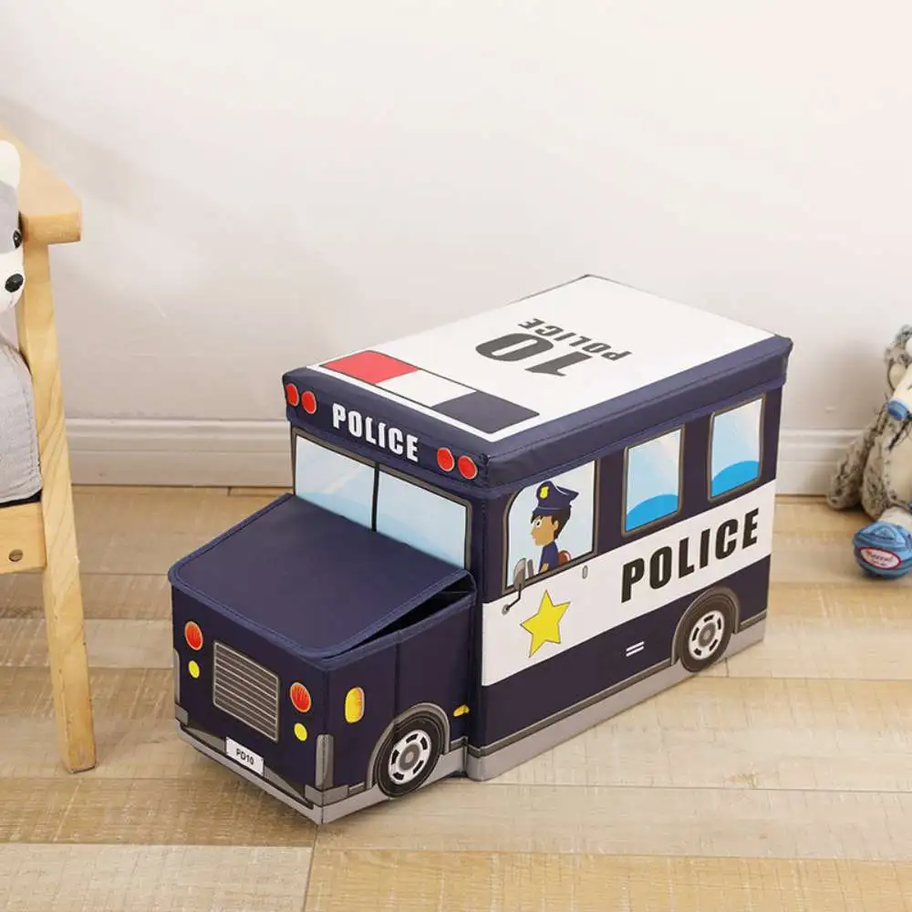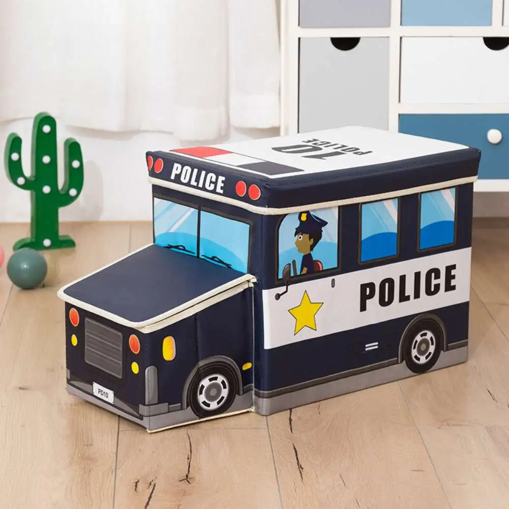 Caja organizadora plegable para niños. Caja Puff Plegable Organizador de Juguetes de Carrito para Niños Azul.