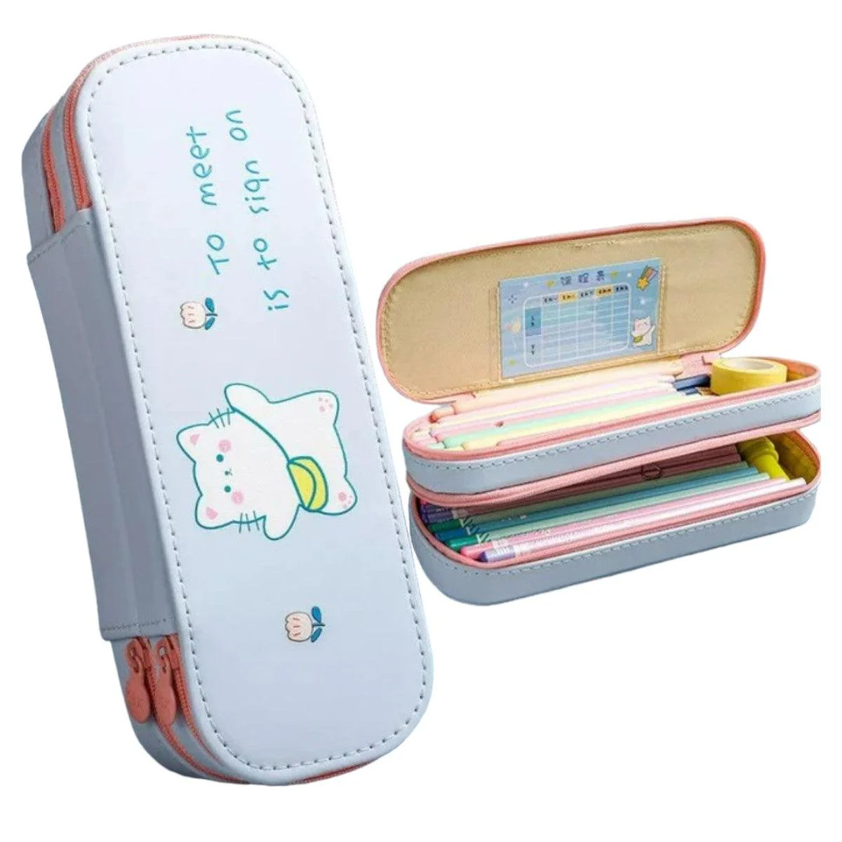¡Organiza tus útiles escolares con estilo con nuestra Cartuchera Doble Kawaii! Con doble compartimento y doble cierre para mayor seguridad.