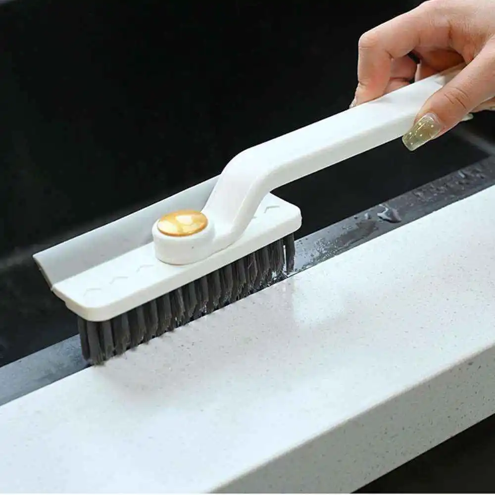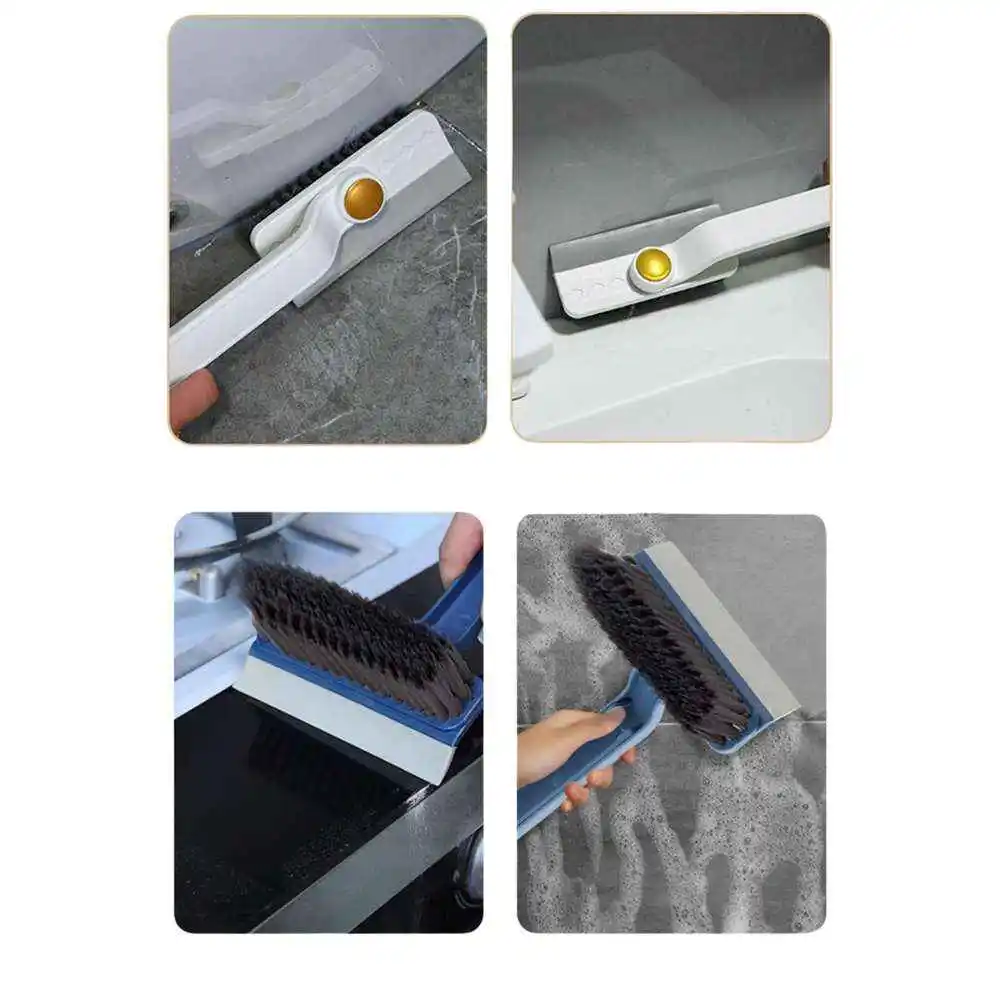 Cepillo de limpieza, cepillo de limpieza de rotura de rotación 4 en 1, cepillo de limpieza de baño con cepillo, raspador de cerdas en forma de V, para limpiar espacios pequeños y desagües.