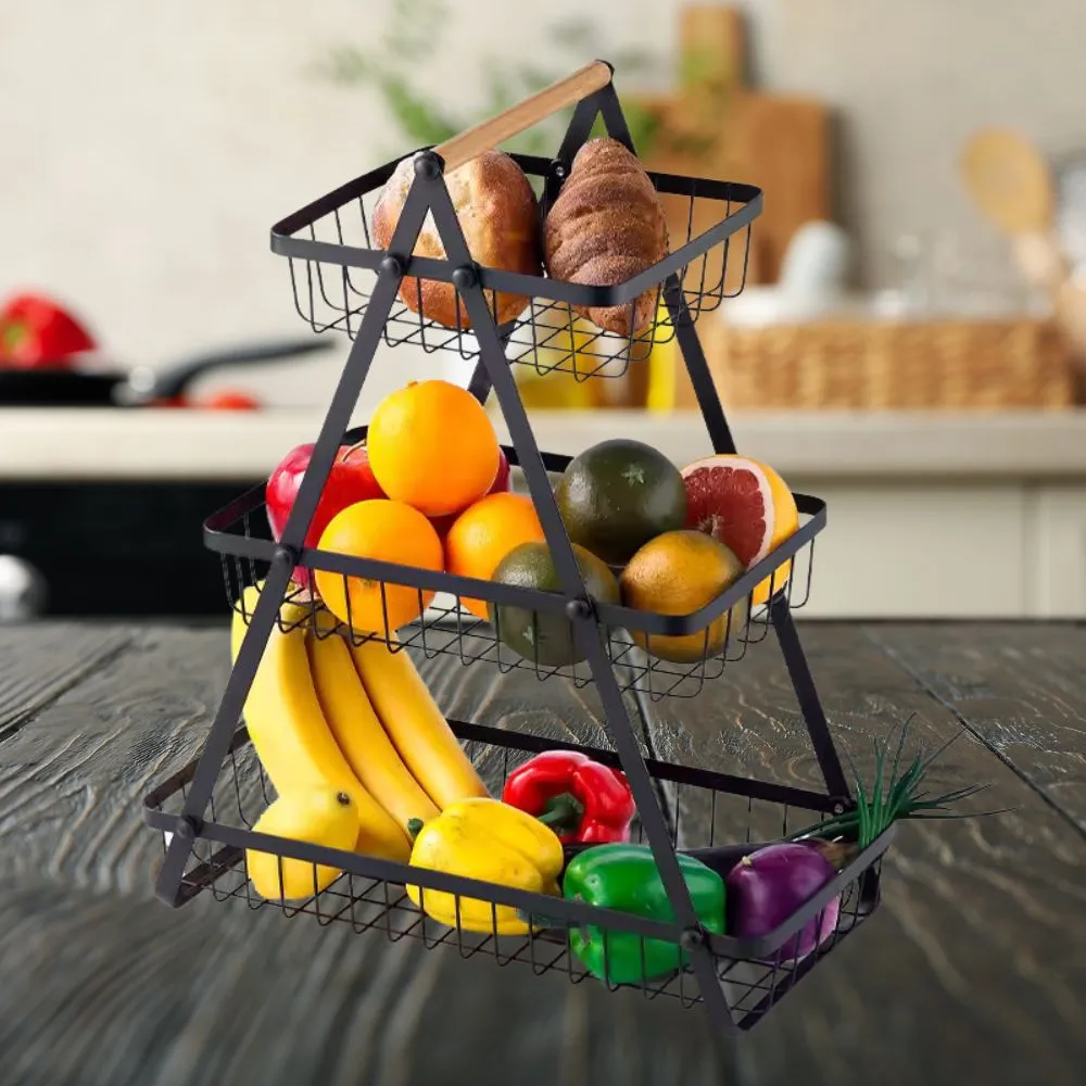 Cesta De Metal Para Encimera De Frutas y Verduras Estante De Almacenamiento De 3 Capas Para Pan Frutas Y Verduras frutero 3 niveles.