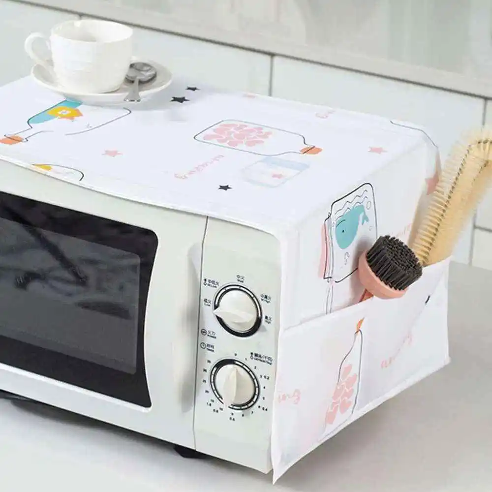 Peva-cubiertas a prueba de polvo para horno microondas, cubiertas impresas a prueba de polvo y aceite con bolsillos dobles, bolsa de almacenamiento, accesorios de cocina
