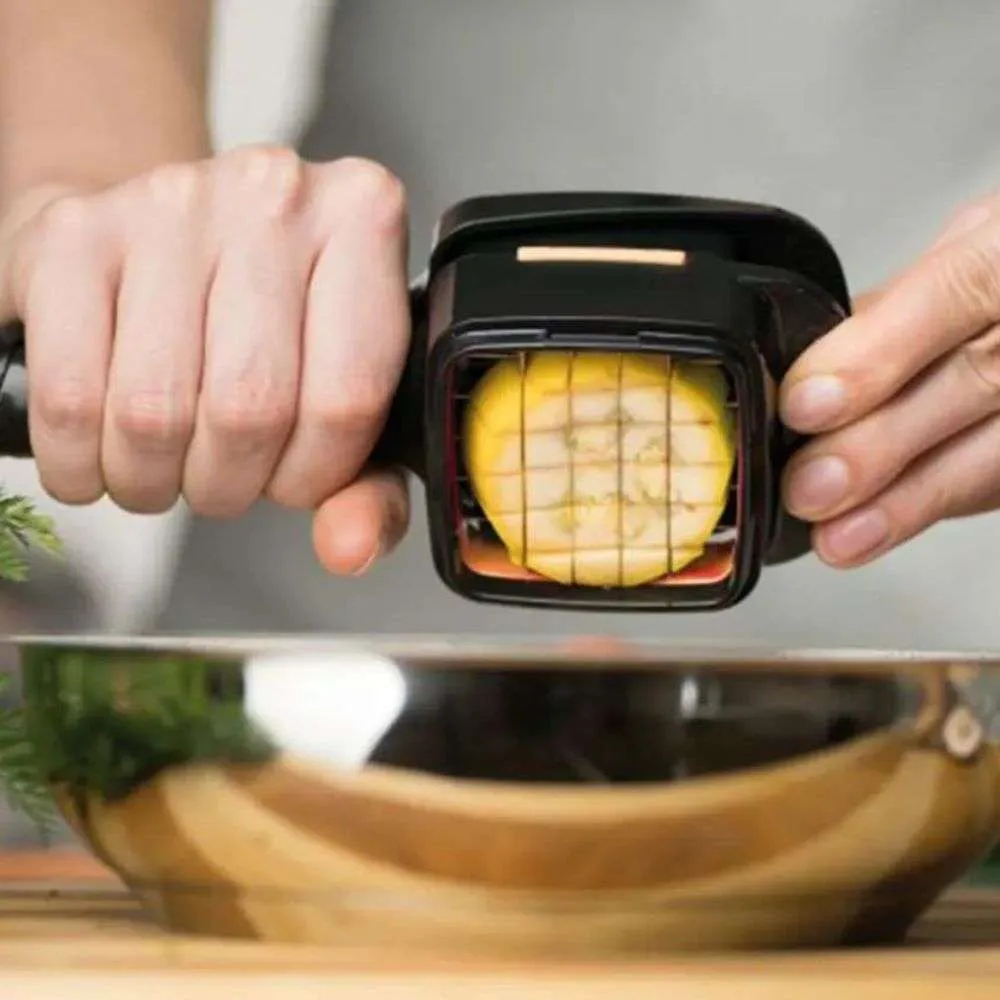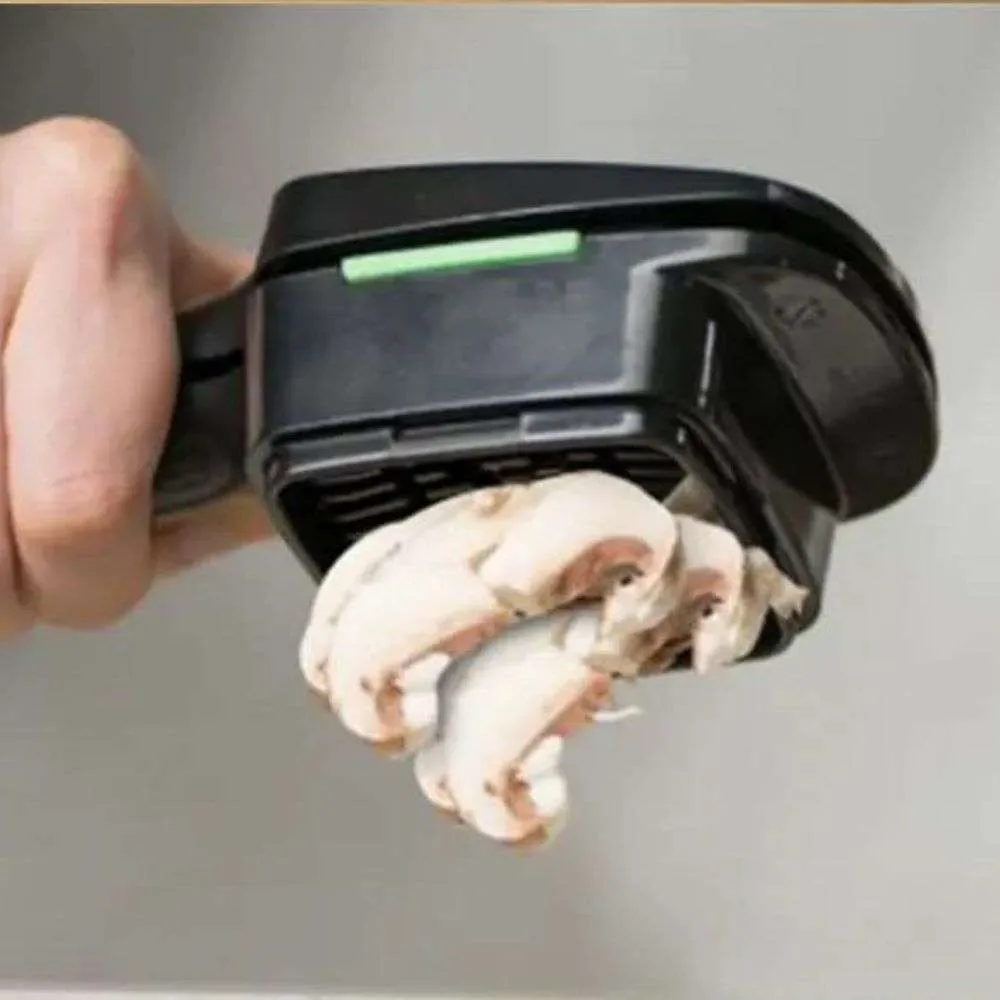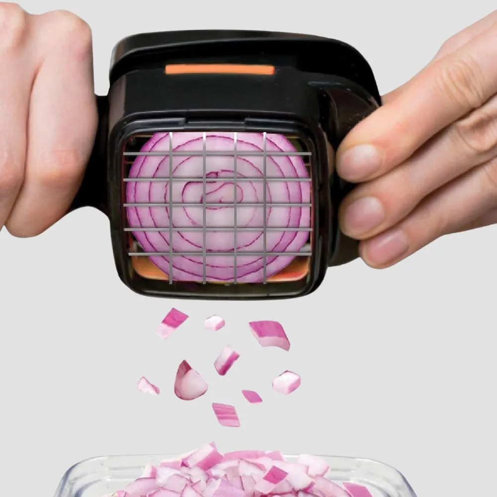 Más opciones de corte: esta picadora tiene 6 cuchillas diferentes de acero inoxidable que pican, rebanan, cuñan, dados, cubos de alimentos enteros como verduras, cebolla, ajo, manzana, frutas y queso. Es duradero y ligero.