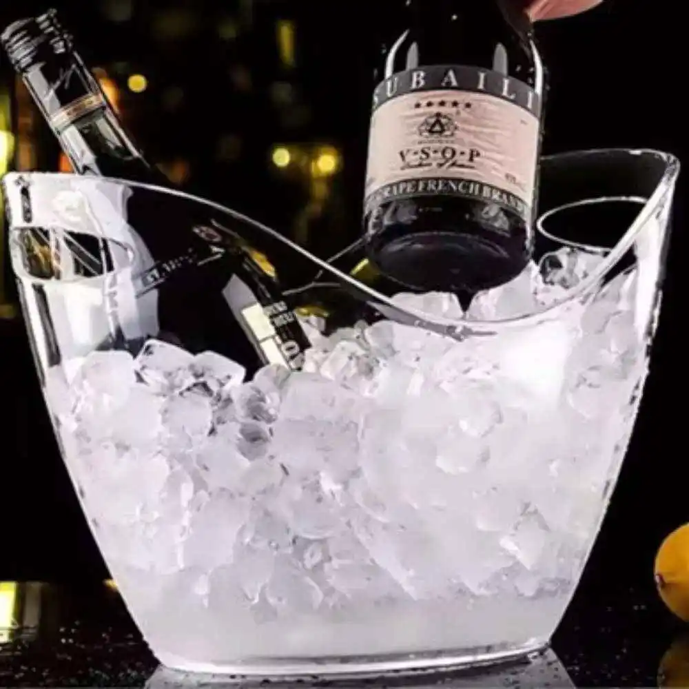 Mantén tus bebidas en perfecto estado con la hielera. El material engrosado evita eficazmente que el hielo se escape, mientras que el diseño transparente añade un toque de elegancia. Además, el asa integrada facilita su transporte.