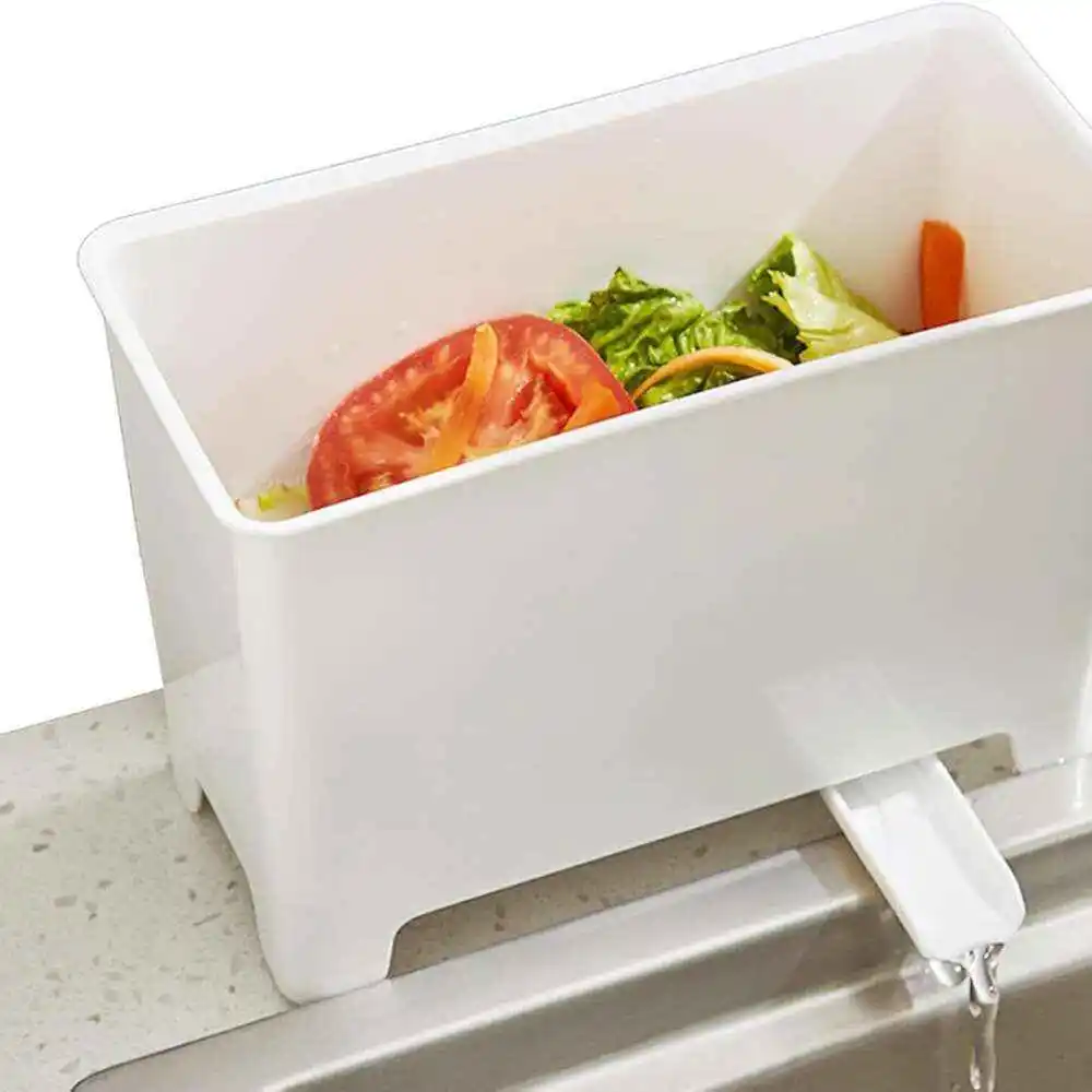 El cubo de basura para drenaje de cocina tiene un diseño de separación que recoge la basura de alimentos y el agua en secciones separadas. Esto evita la obstrucción y el olor en su fregadero. También tiene una ranura de guía de agua giratoria de 180 y una salida de drenaje independiente que le permite drenar el agua fácilmente.