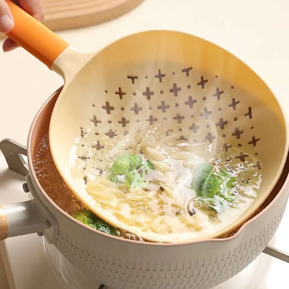 Cuchara colador. Colador grande viento celebridad drenaje mango largo fideos bola de masa colador de plástico resistente a altas temperaturas.