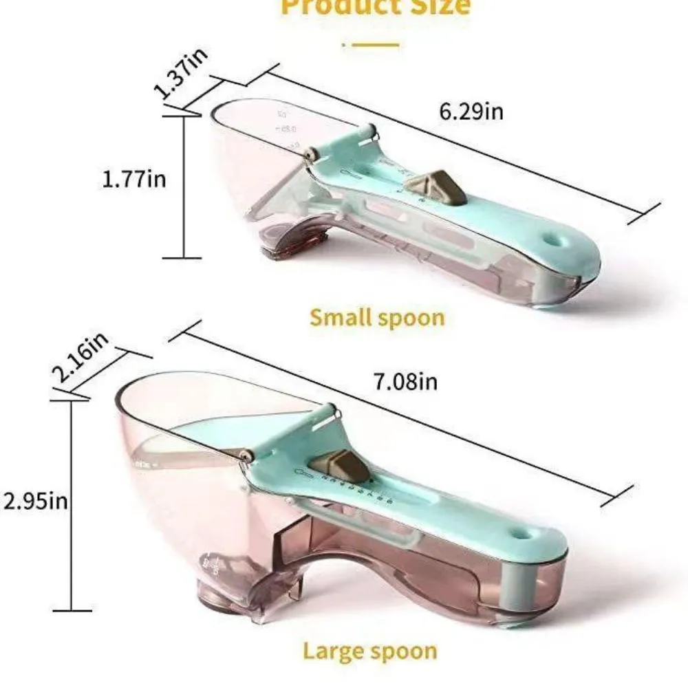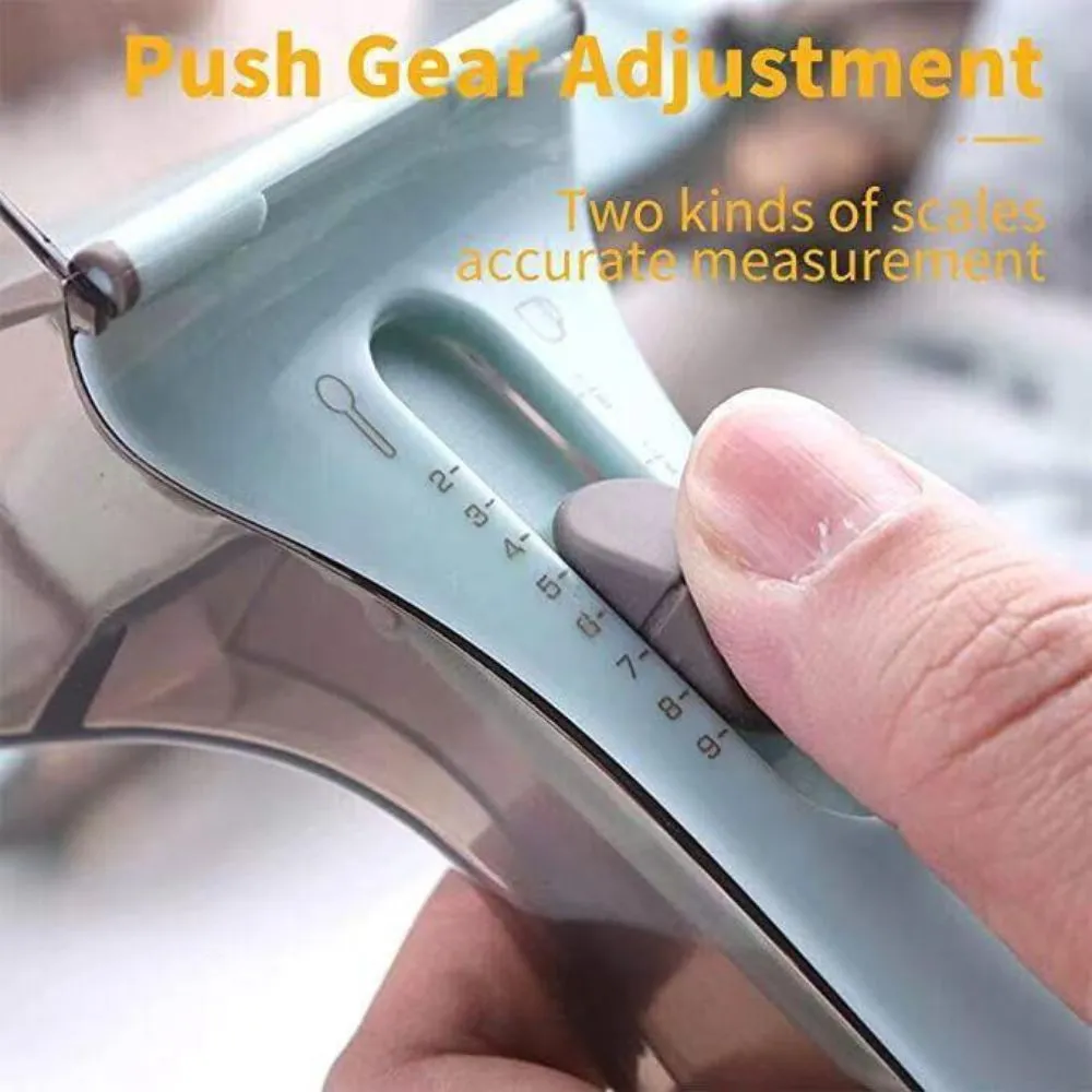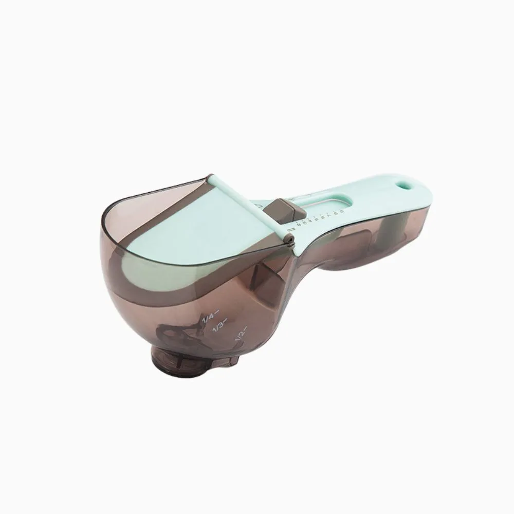 Cuchara con Escala medidora, se puede ver claramente, pulsa el botón del mango para cambiar la capacidad.