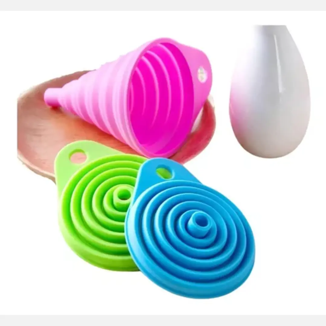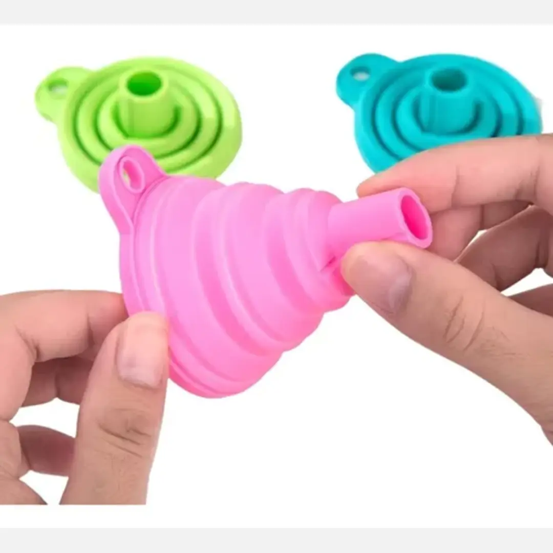Practico embudo que ayuda a dispensar el aceite, agua , jugo en el frasco requerido.