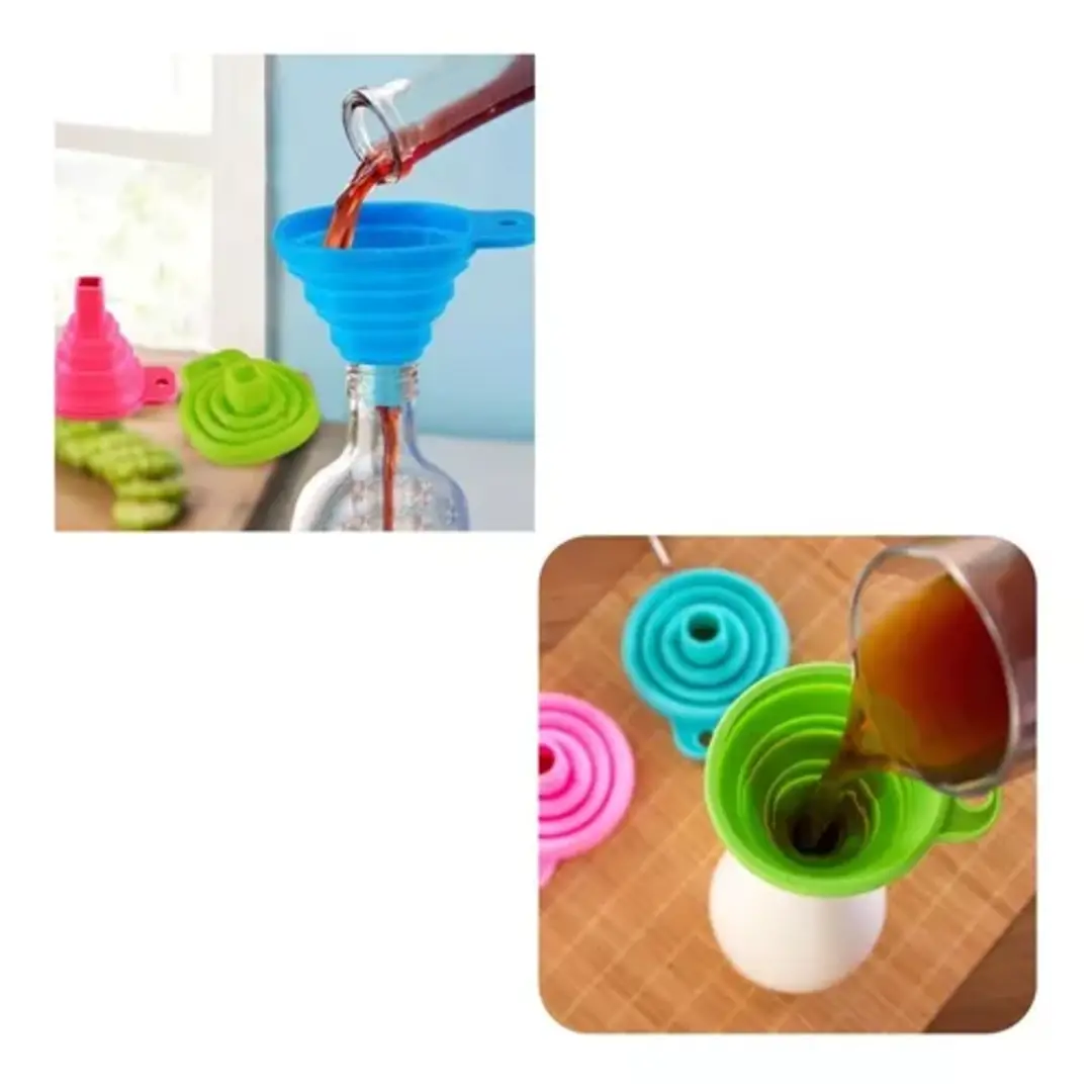 El embudo se puede retraer y plegar para facilitar su uso en cualquier momento. Cuando no está en uso, se puede limpiar, doblar y almacenar en una cuadrícula, lo cual es muy conveniente.