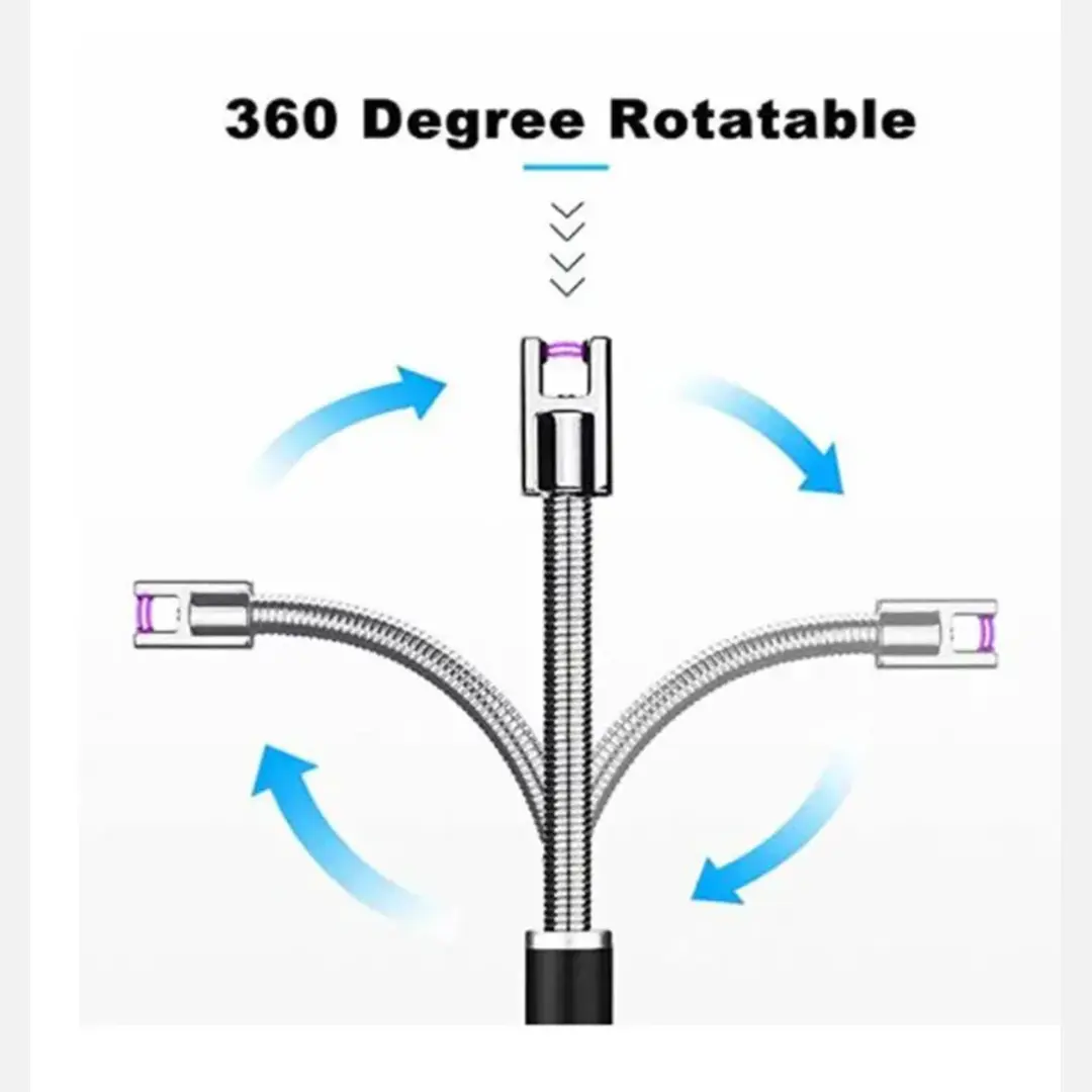 Cuello flexible de 360 °: este Encendedor de Recargable con el cuello flexible de 10 cm de largo se puede girar 360 grados y se puede doblar en diferentes direcciones para cumplir con diferentes aplicaciones. Además, la longitud y el interruptor de seguridad lo mantienen alejado del daño.