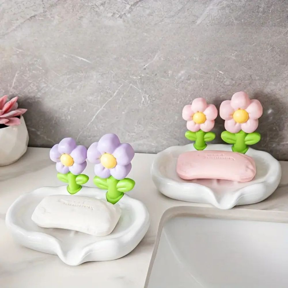 Jabonera flowers Duradera con Drenaje Automático