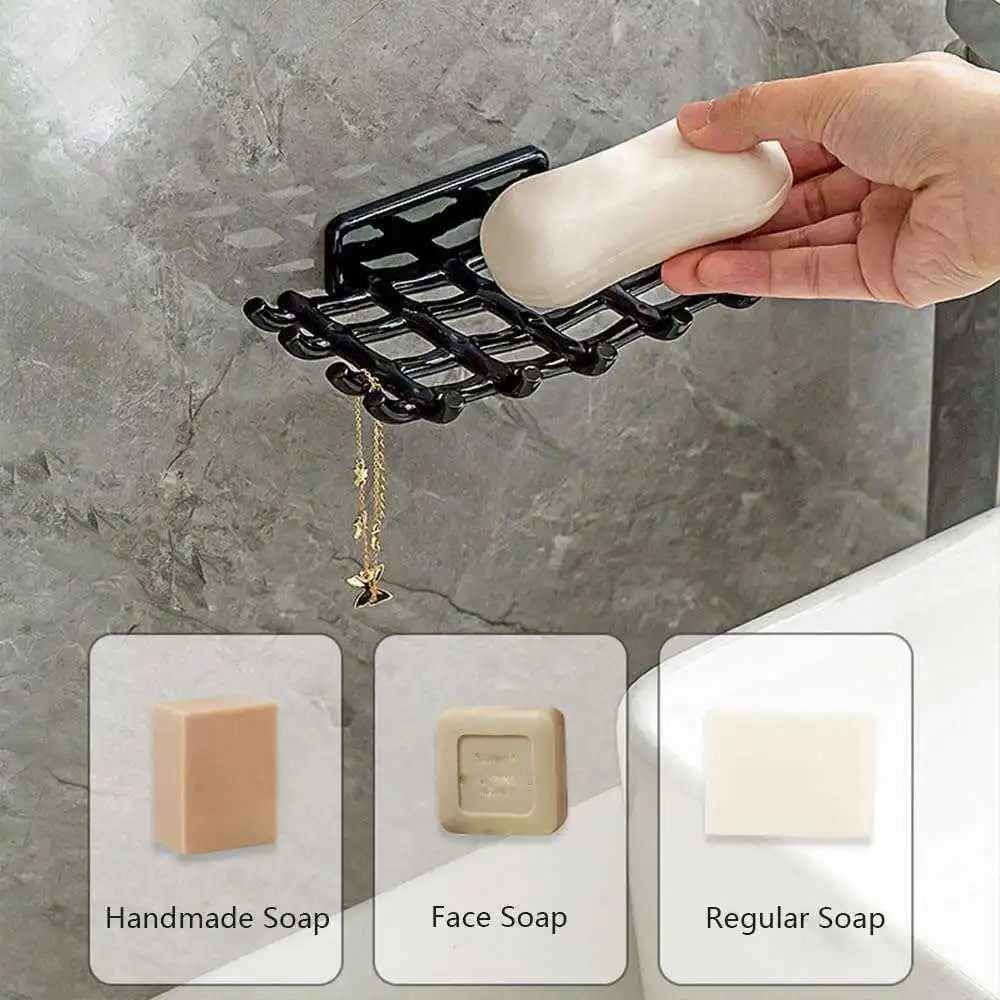 Rejilla mejorada para jabón, estante para jabón montado en la pared, sin perforaciones, caja de almacenamiento para baño, estante de drenaje para jabón.