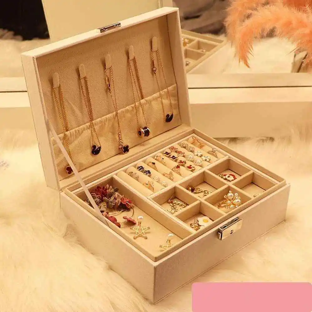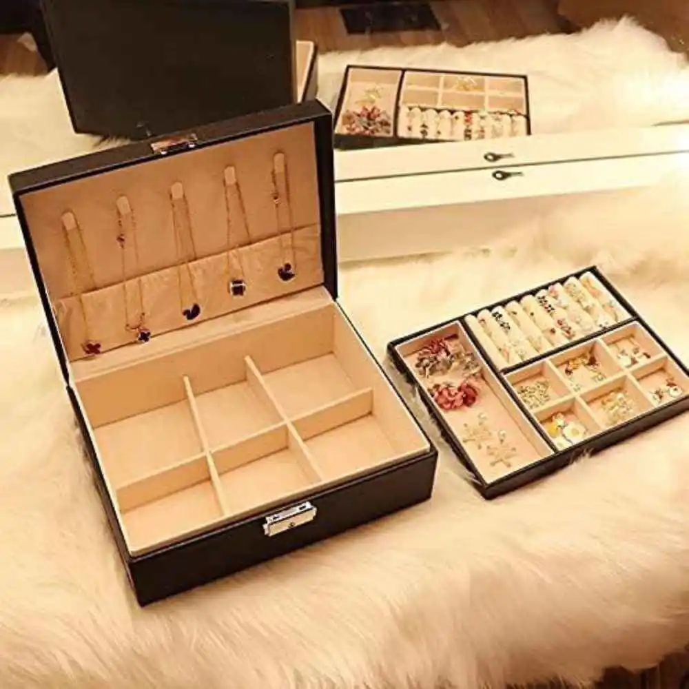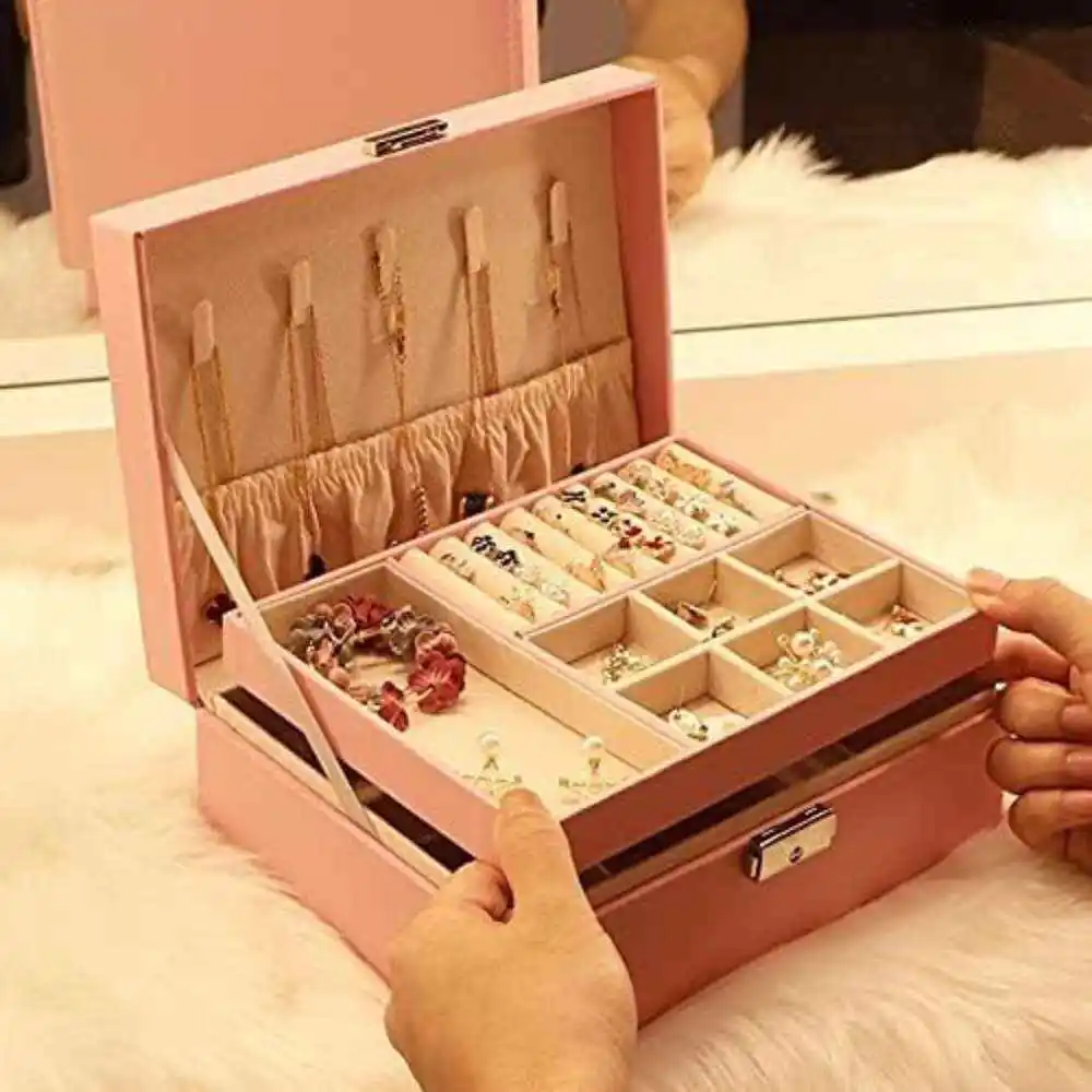 Joyero dos niveles Caja organizador y almacenamiento de joyería organizador de joyas de viaje