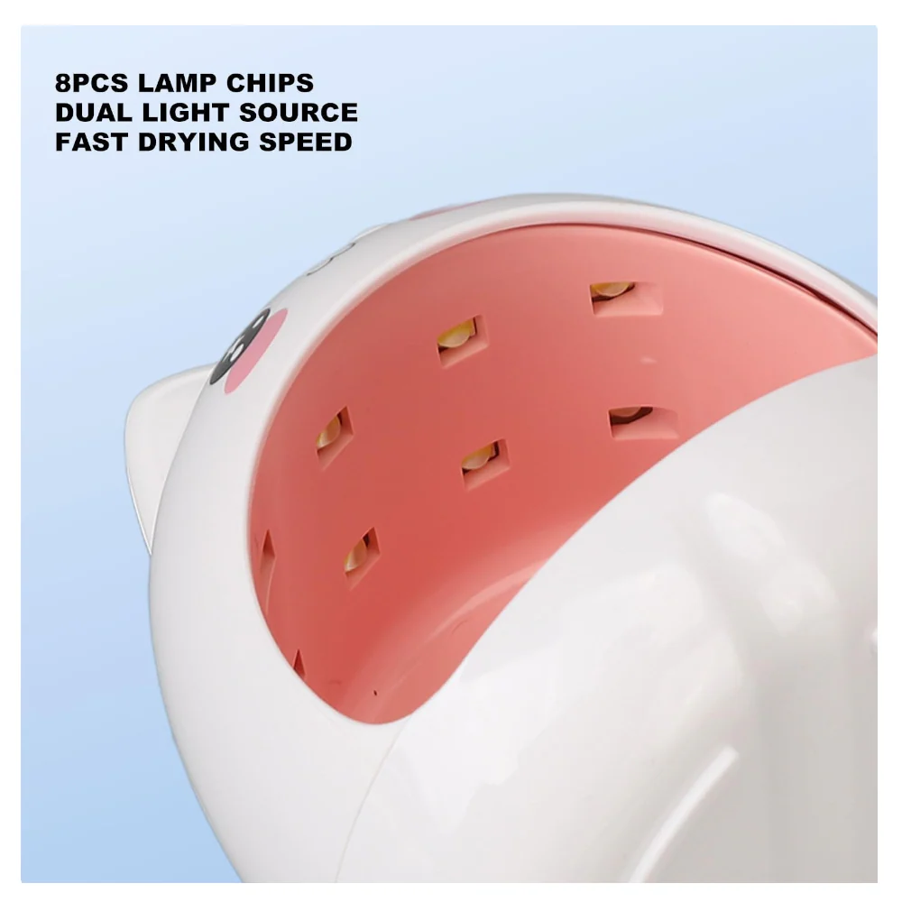 ¿Buscas una lámpara de uñas eficiente, linda y práctica? Nuestra lámpara de curado de esmalte en gel con diseño de gatito es la opción ideal para ti. No solo seca tu esmalte en tiempo récord, sino que su apariencia mini y adorable también la convierte en un accesorio perfecto para decorar tu escritorio o tu rincón de belleza.