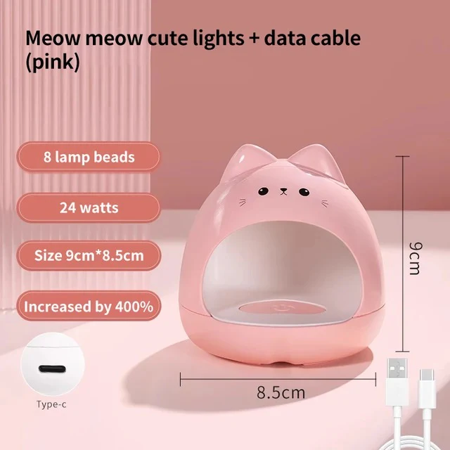 Compra ahora y disfruta de uñas impecables en menos tiempo con nuestra lámpara de uñas de gatito. ¡Tu mejor aliada para una manicure profesional desde casa!
