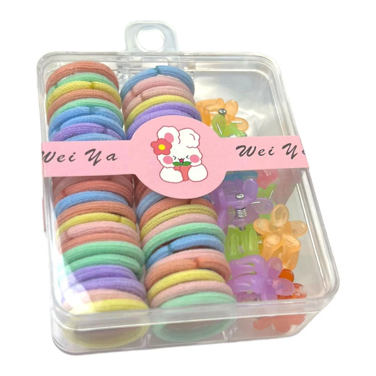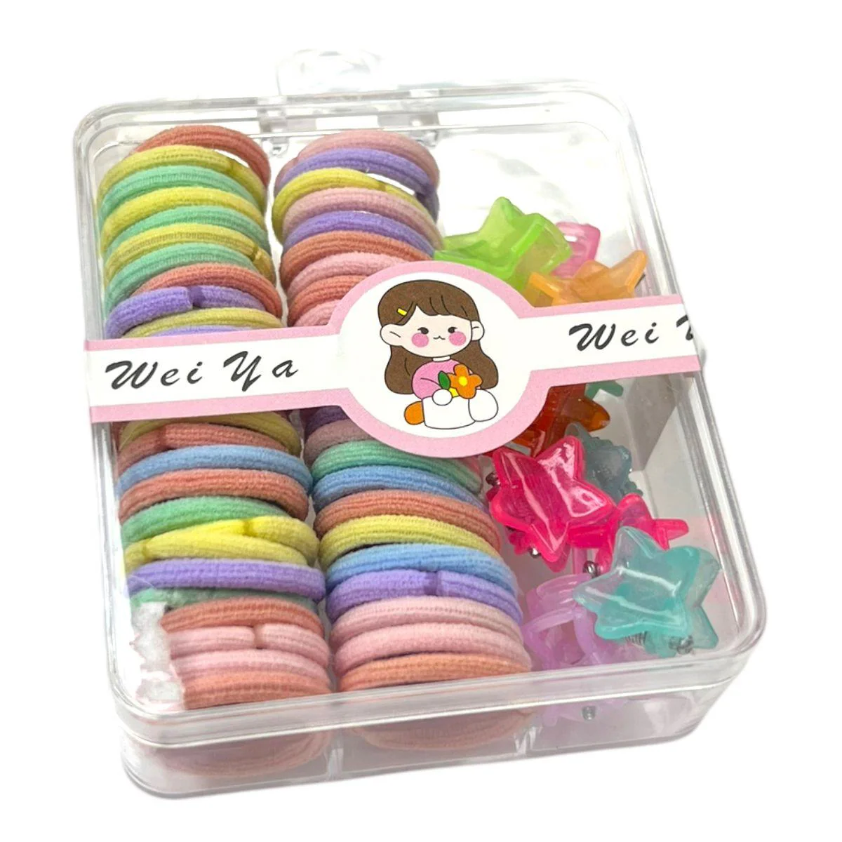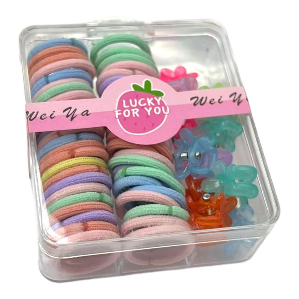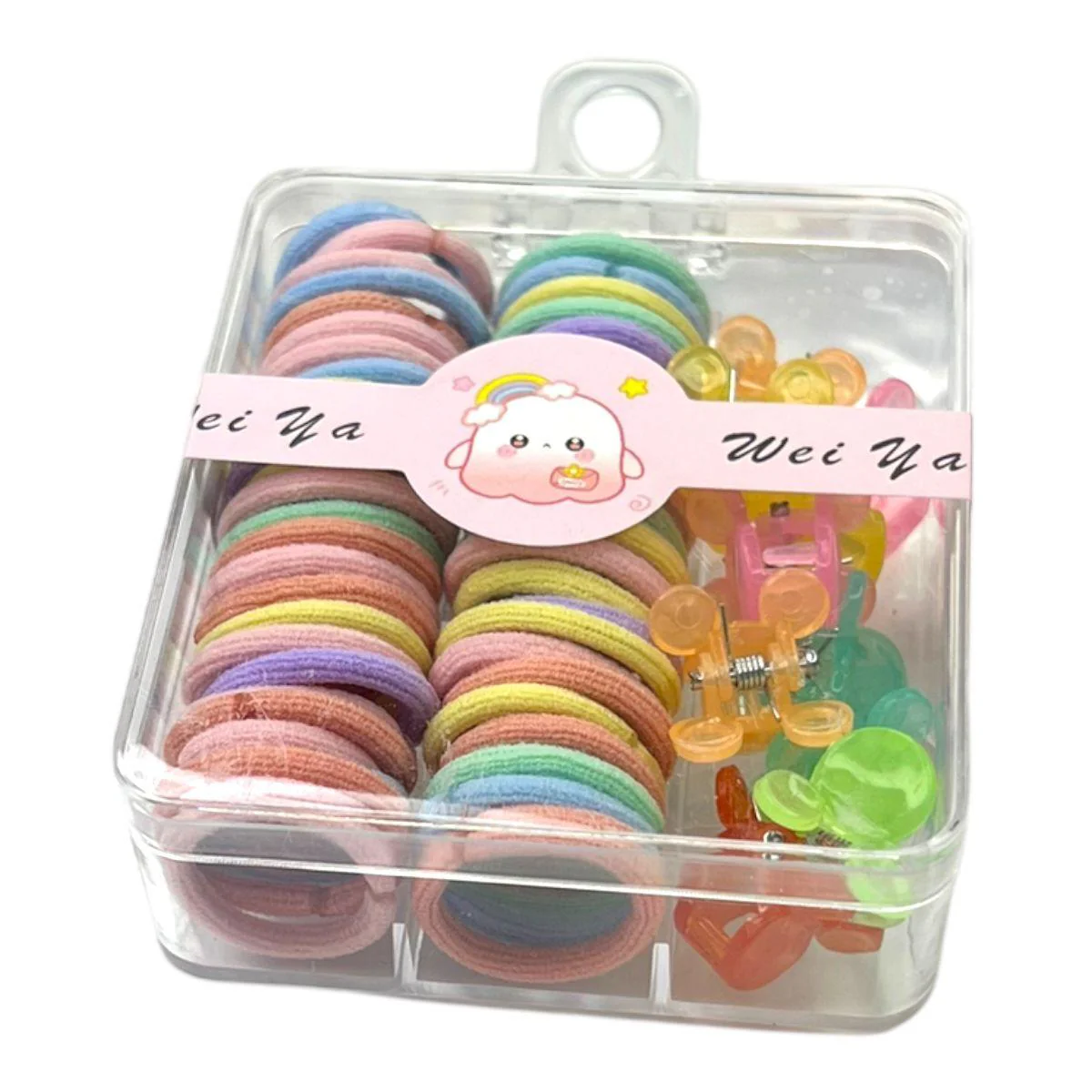 ¡Mantén el cabello de tu bebé siempre adorable y bien peinado con nuestro set de Ligas y Ganchos en una encantadora caja acrílica!