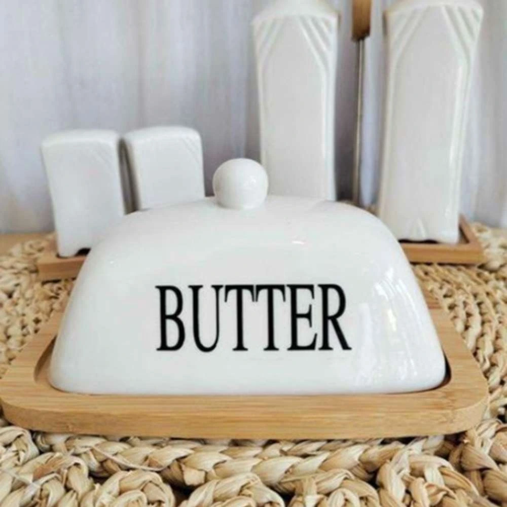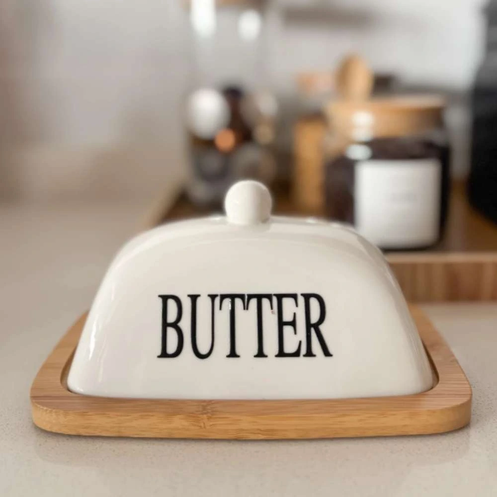 Mantequera de Cerámica con Base de bambú e Inscripción «BUTTER»