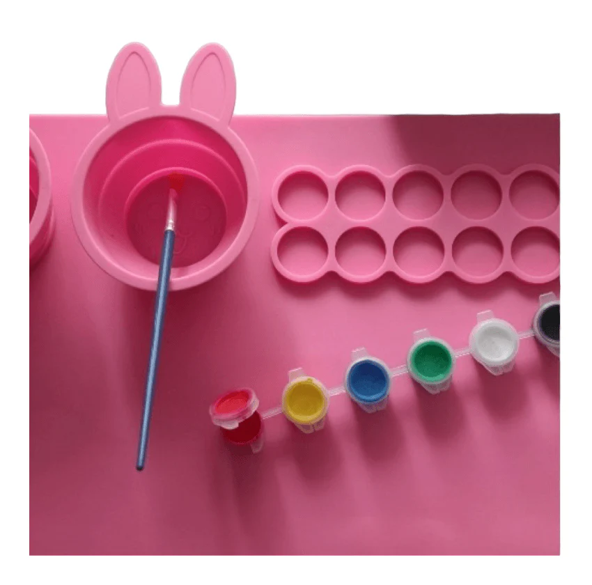 ¡Transforma tu espacio creativo con nuestra alfombra de silicona para pintar! Diseñada con artistas en mente, esta alfombra innovadora hace que la limpieza sea pan comido y minimiza los accidentes. Viene equipada con divisiones perfectas para usar como paleta de pintura y dos vasos retráctiles para tu agua. ¡Adiós a los líos y hola a la creatividad sin preocupaciones!