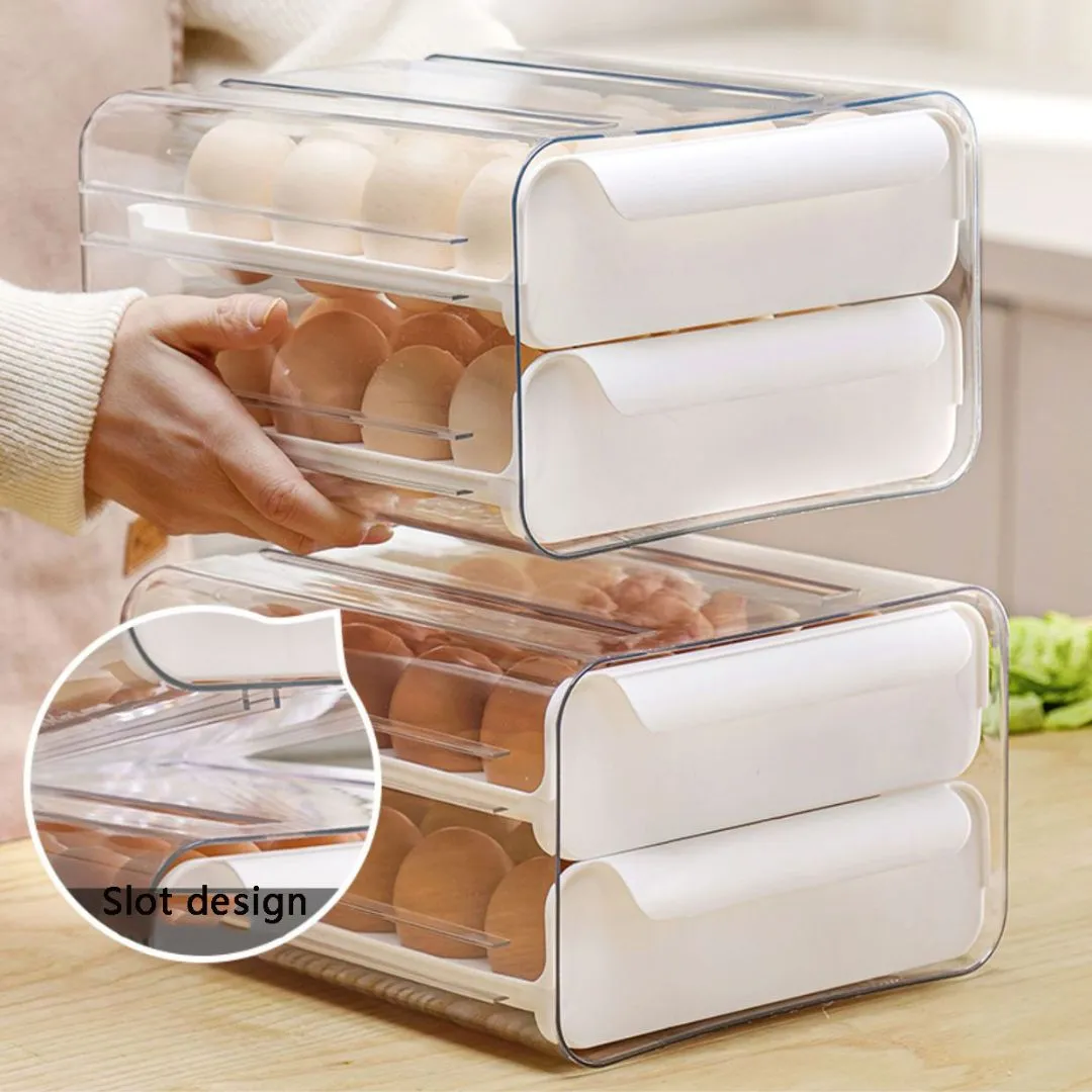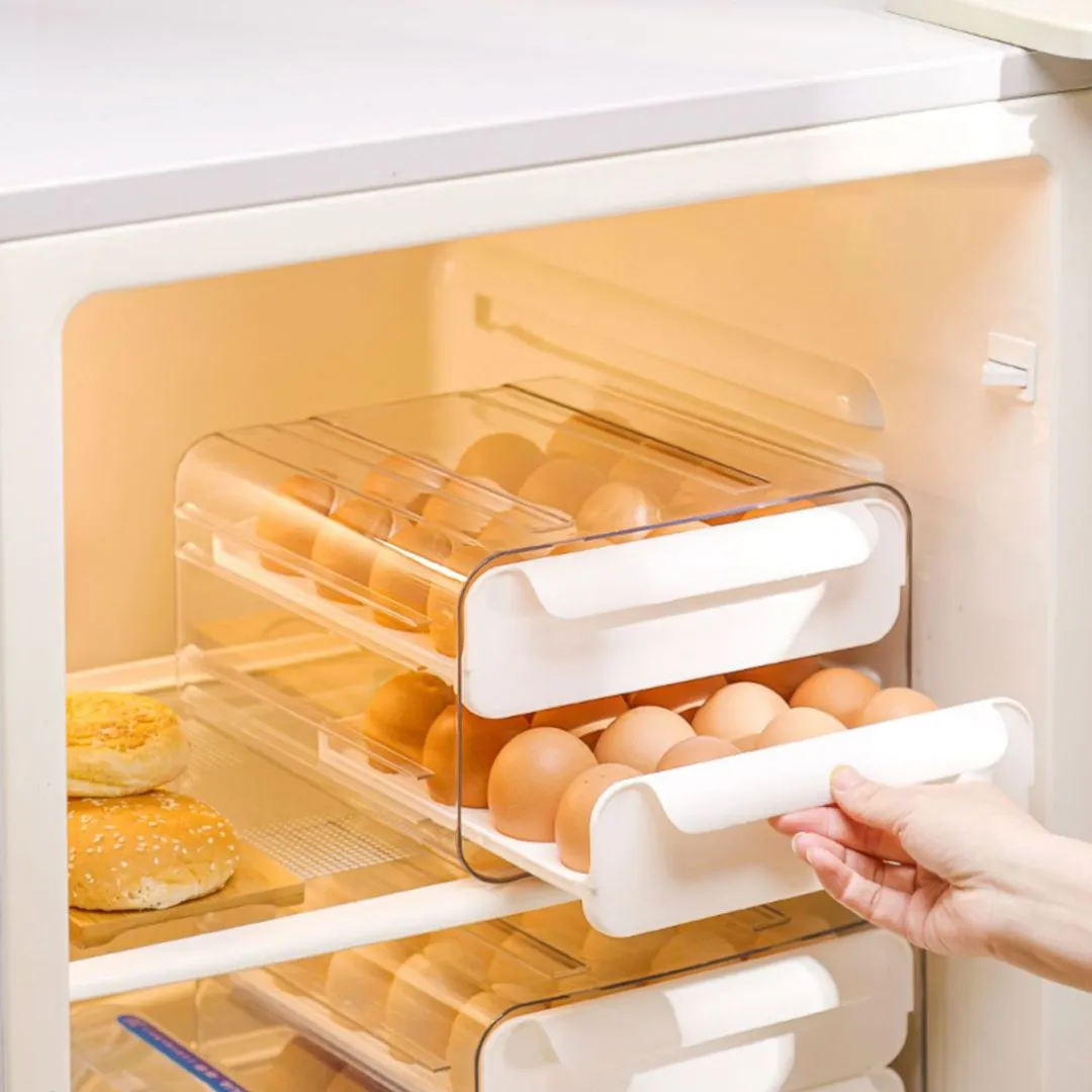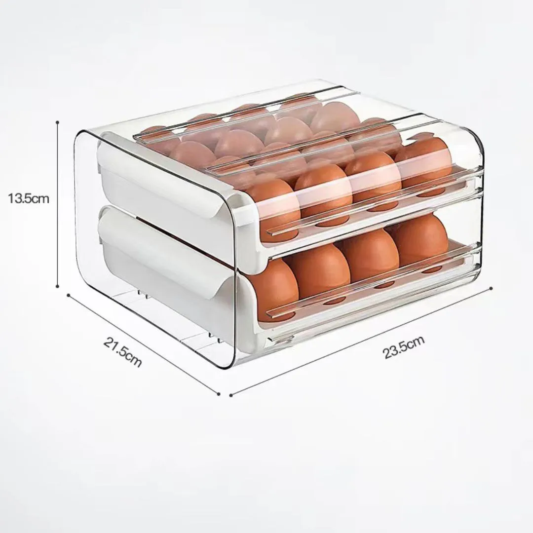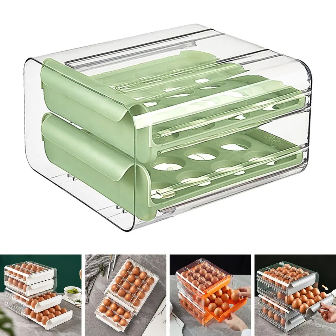 Porta huevo ideal para mantener tus espacios organizados. Hecho de material PET de calidad alimentaria, el material es seguro, resistente y duradero. Con 32 rejillas de gran capacidad, diseño de doble capa, cada capa puede almacenar 16 huevos libremente, cada huevo se coloca por separado para evitar sacudidas y prevenir eficazmente la colisión y rotura de estos.