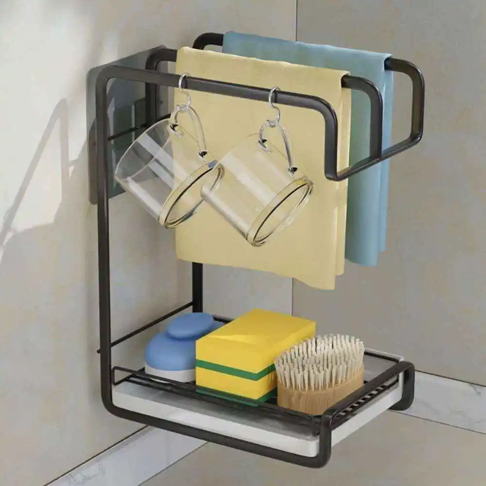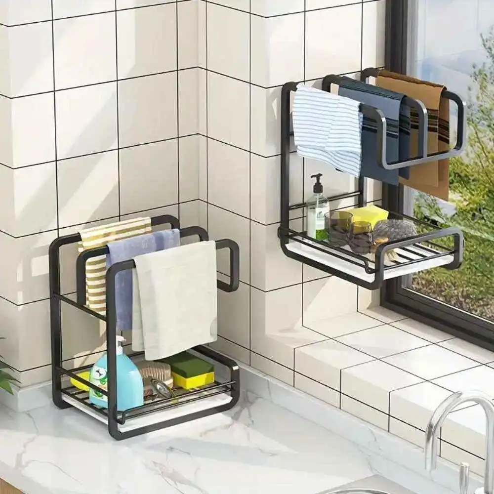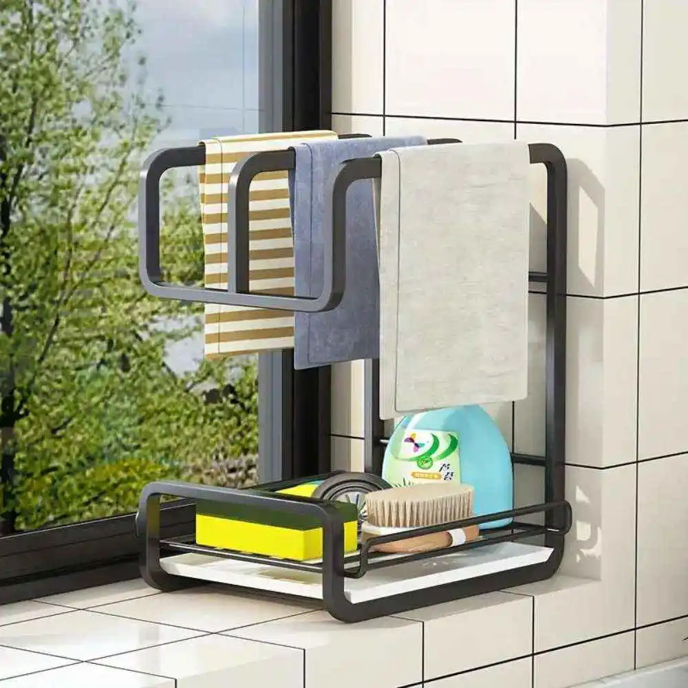 Organizador de lavadero Estante para fregadero toalla esponja , Estante de almacenamiento de cocina, soporte de acero al carbono.