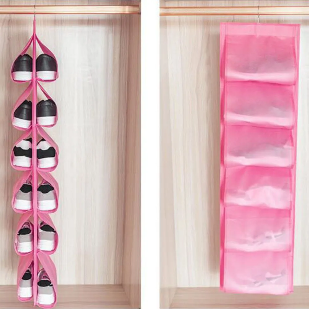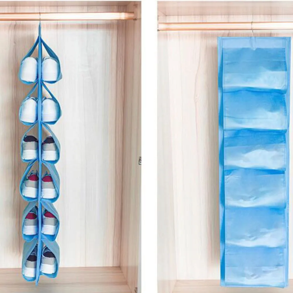 Organizador de zapatos con gancho plegable, Bolsa de almacenamiento plegable con 12 bolsillos, Zapatero colgante, organizador de zapatos, bolsa de almacenamiento de tela con gancho
