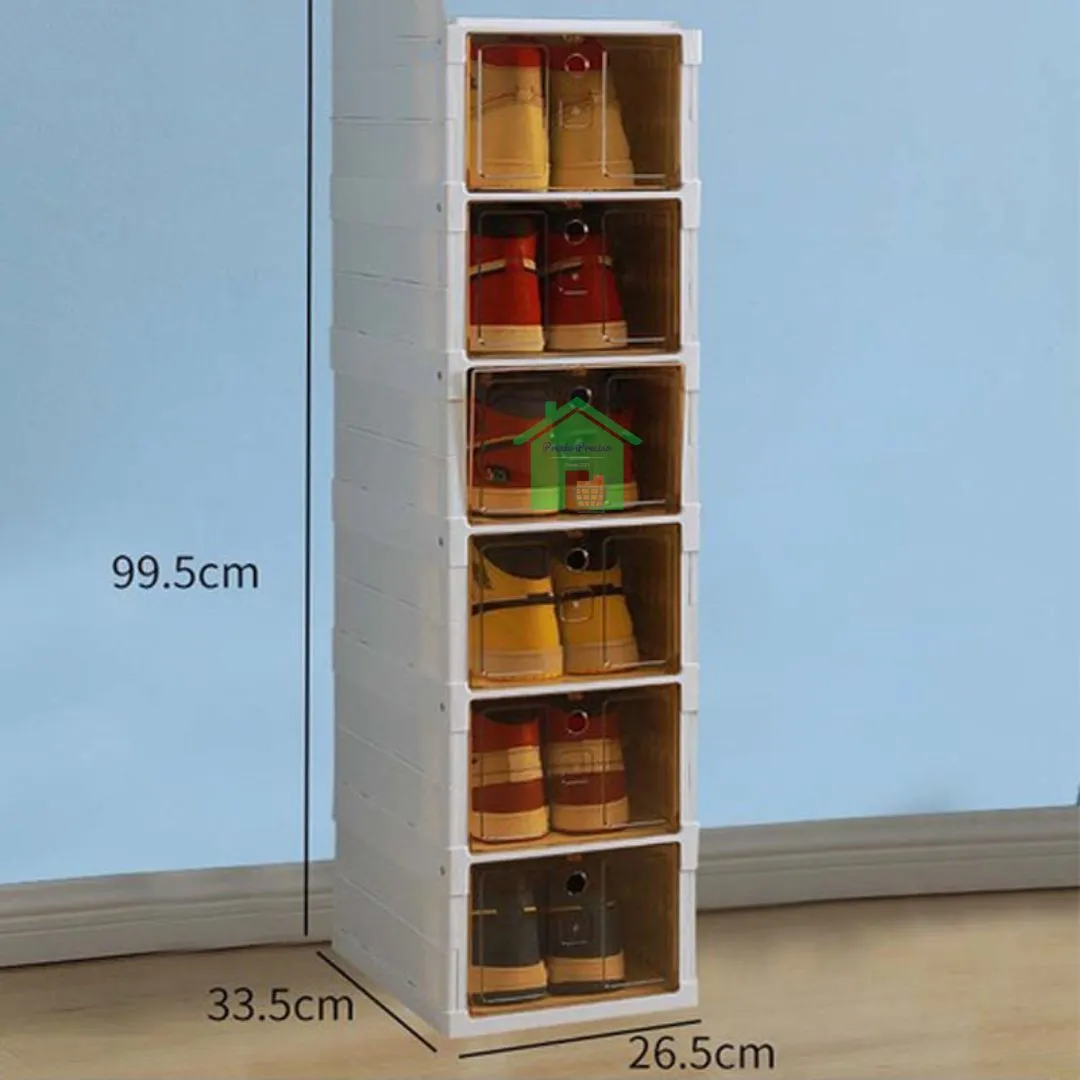 las puertas transparentes y los paneles laterales del armario, hacen que sea fácil ver todos tus tacones o tenis, y recuperar los que deseas sin complicaciones con cajas apiladas una encima de la otra.