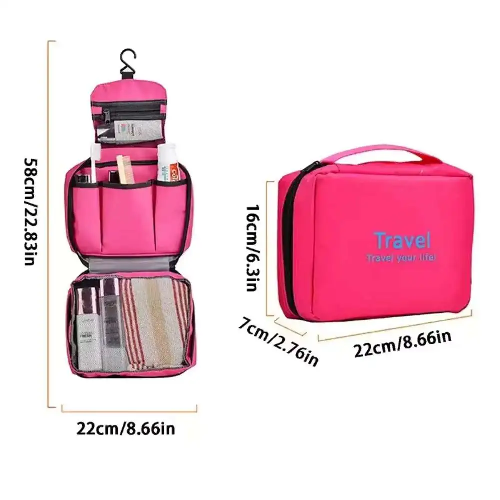 Organizador plegable portatil viajero 2en 1, Bolsa de aseo colgante para hombre y mujer, Kit organizador de aseo de viaje, cosméticos, maquillaje, gancho colgante resistente.