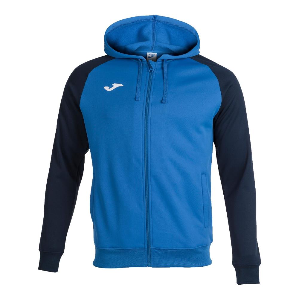 Polerón con cremallera para hombre/niño. Esta chaqueta está indicada para entrenamientos deportivos, para después de hacer deporte o incluso para el uso diario. Es especialmente cómoda para entrenamientos y calentamientos de fútbol y fútbol sala. Con ella, el futbolista se mantendrá abrigado sin que se va limitada su libertad de movimientos. Cuenta con capucha ajustable mediante cordones planos y bolsillos sin cierre de cremallera para guardar pequeños objetos y estilizar la prenda. Los puños y el bajo están confeccionados en material rib para proporcionar un ajuste cómodo y aislar mejor del frío. Además, las mangas son tipo raglán, que contribuyen a la libertad de movimientos. Al eliminarse las costuras del hombro, la camiseta es fácil de mover y muy cómoda. Incorpora fleece en el interior, un tejido suave y cálido, que se encarga de mantener la calidez durante los entrenamientos a bajas temperaturas y maximizar el confort. Además, el exterior de la prenda ha sido confeccionado con un tejido resistente para alargar su vida útil. Presenta un diseño sencillo y minimalista con mangas en contraste. Muy fácil de combinar con un pantalón de chándal para conseguir el chándal completo. Logotipo Joma serigrafiado.