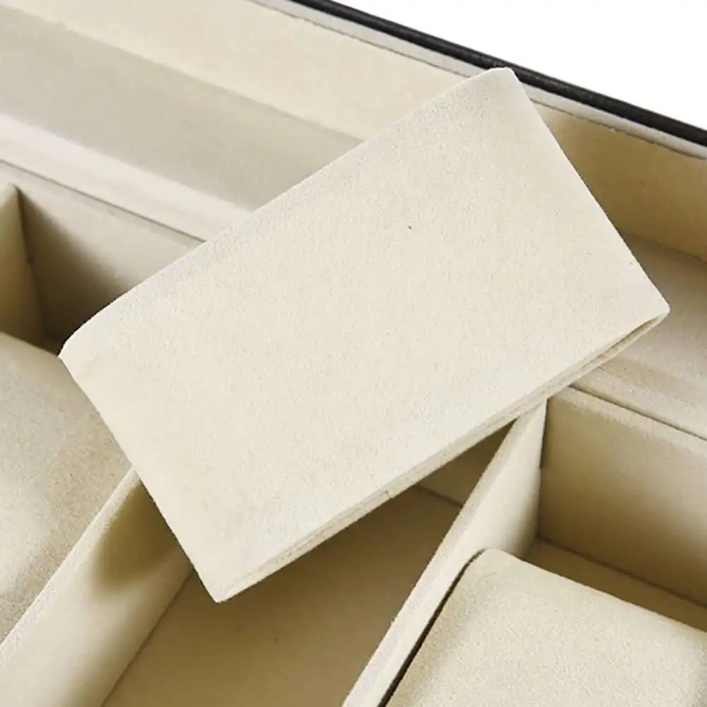 Los bordes y las esquinas de la caja de almacenamiento del reloj están bien procesados, y la tela se estira plana sin arrugas. Con rejillas móviles, puedes combinar libremente para mostrar tus joyas maravillosamente.