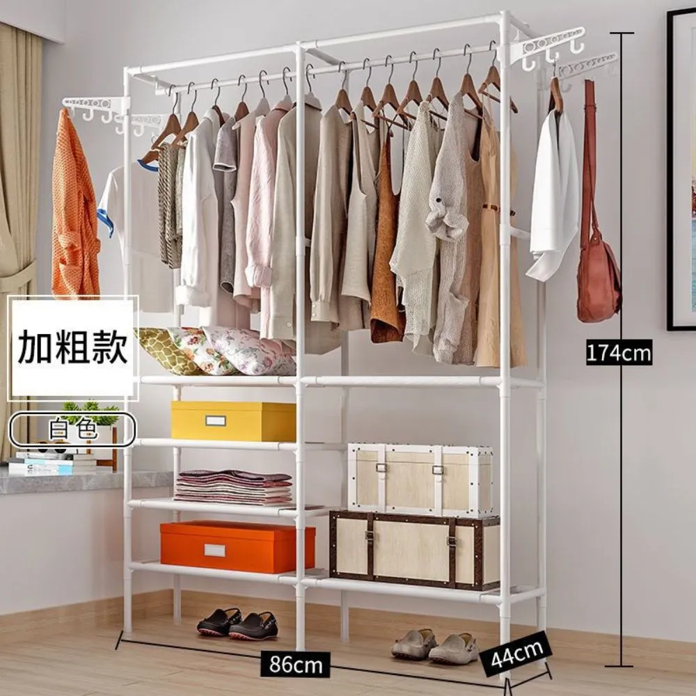 Alta resistencia debido a sus tubos de metal y las uniones o conectores de plástico. Cada nivel tiene capacidad para sostener un peso de hasta 7k. Las barras para colgar soportan hasta 15k, lo que garantiza que tu ropa se mantenga estable. A cada lado tiene adicional 2 colgadores de ropa.