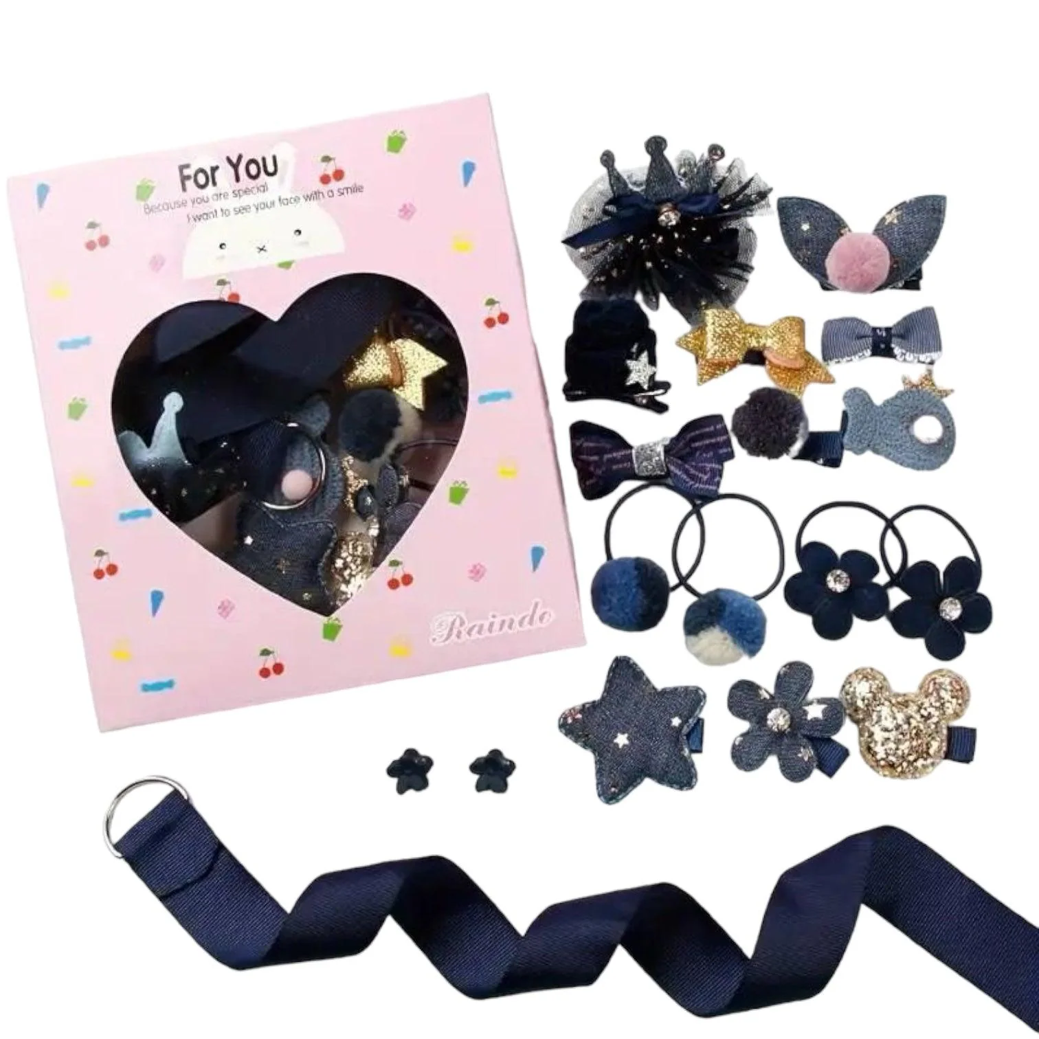 Caja de regalo con 18 accesorios para el cabello de bebé.