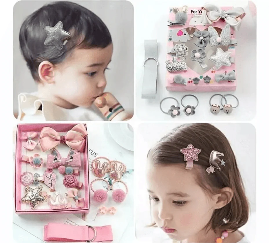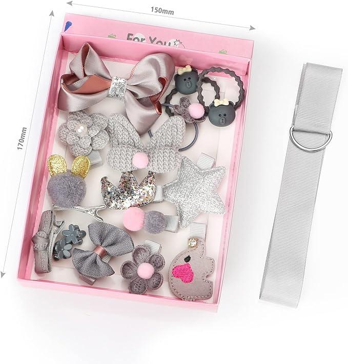 Caja de regalo con 18 accesorios para el cabello de bebé.