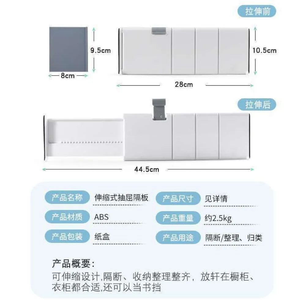 Set de 2 Separadores retráctiles de cajones, Nuevas particiones de cajones retráctiles, particiones de estantería creativas, almacenamiento y organización del hogar