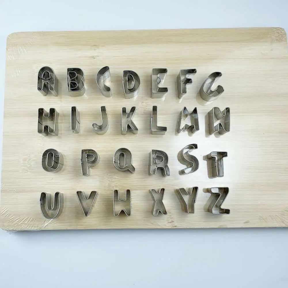 set de cortadores letras alfabeto, molde para cortar letras de frutas y verduras, molde para galletas de acero inoxidable de letras.