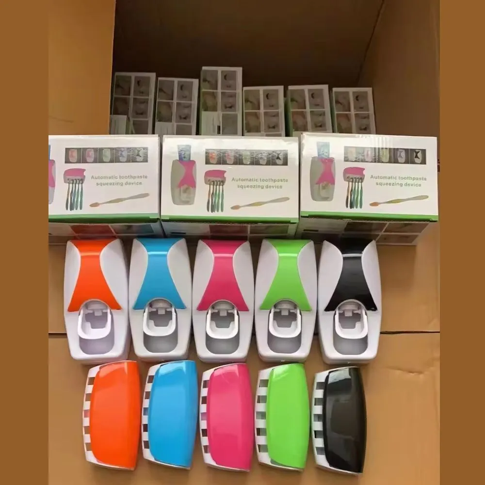 Soporte para cepillo de dientes de cinco ranuras que aprieta automáticamente la cantidad adecuada de pasta de dientes con un solo toque ayudando a detener el desperdicio de pasta de dientes.