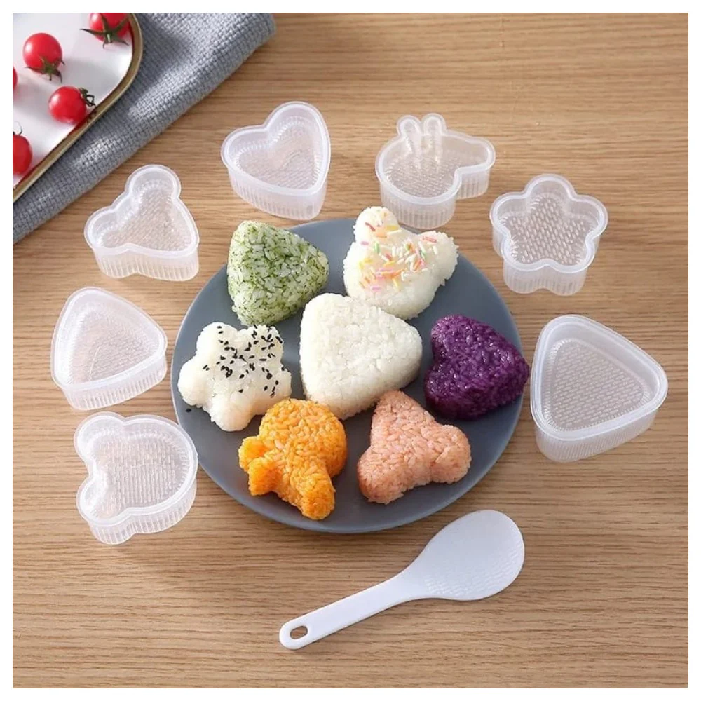 - Variedad de formas: Incluye 7 diseños diferentes para moldear arroz, puré y más en figuras como corazones, flores, y otras formas adorables. ¡Ideal para la lonchera y platos de los niños!