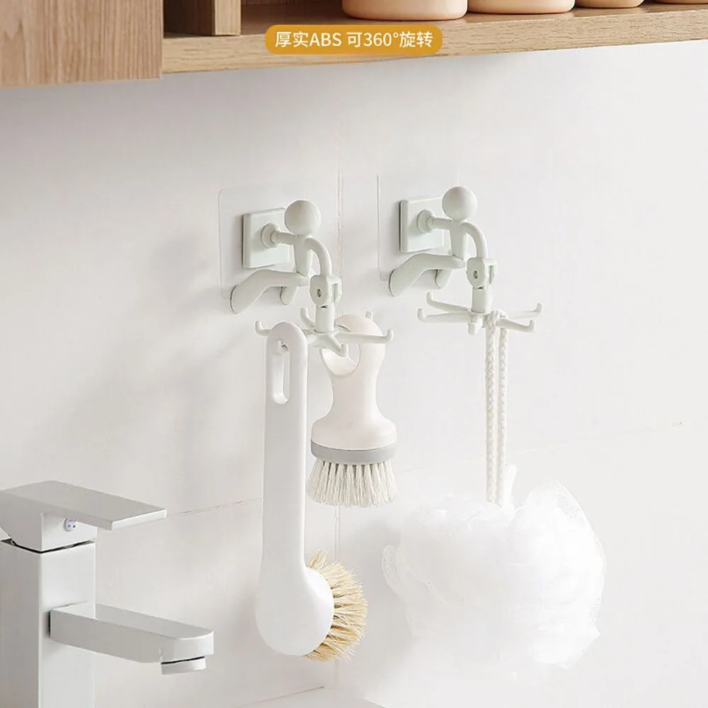 gancho giratorio rotación 360°, Incluye sticker adhesivo , coloca tus utensilios en los ganchos, Permite colgar hasta 6 utensilios a la vez, sin perforaciones, estante de pared retráctil para cocina.