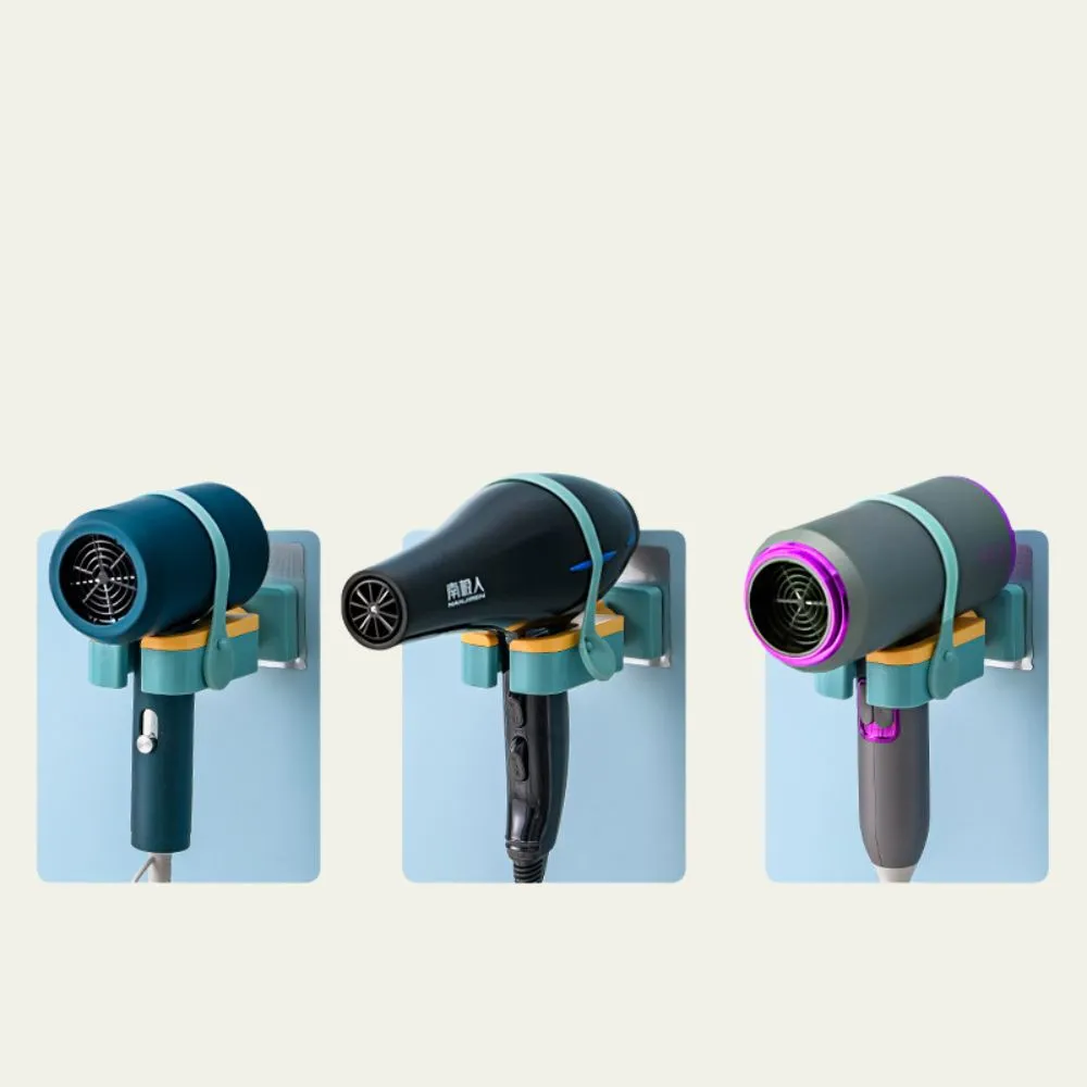 Soporte de secador de pelo montado en la pared sin perforaciones para baño, alambre de inodoro, se puede enrollar, estante de almacenamiento de secador de pelo giratorio.