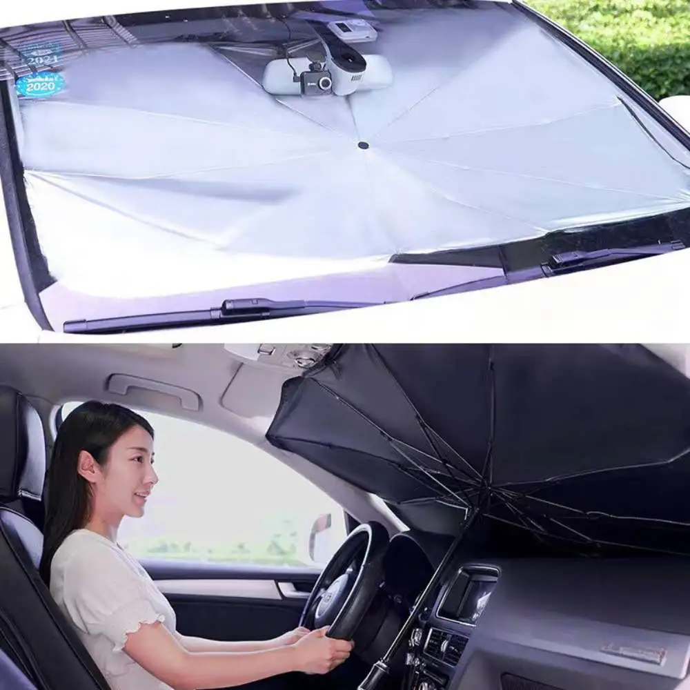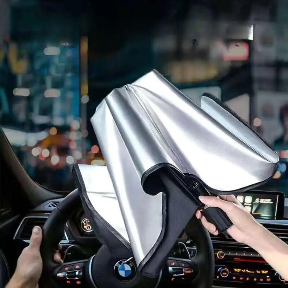 Popular paraguas abierto para parabrisas de coche, paraguas plateado de titanio, paraguas de protección solar y aislamiento térmico.