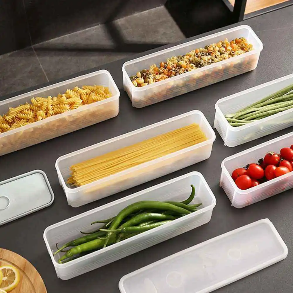 Contenedor de almacenamiento de alimentos de plástico, táper de almacenamiento transparente de cocina para fideos, frutas y verduras, recipientes de almacenamiento de alimentos, utensilios de cocina para el hogar.