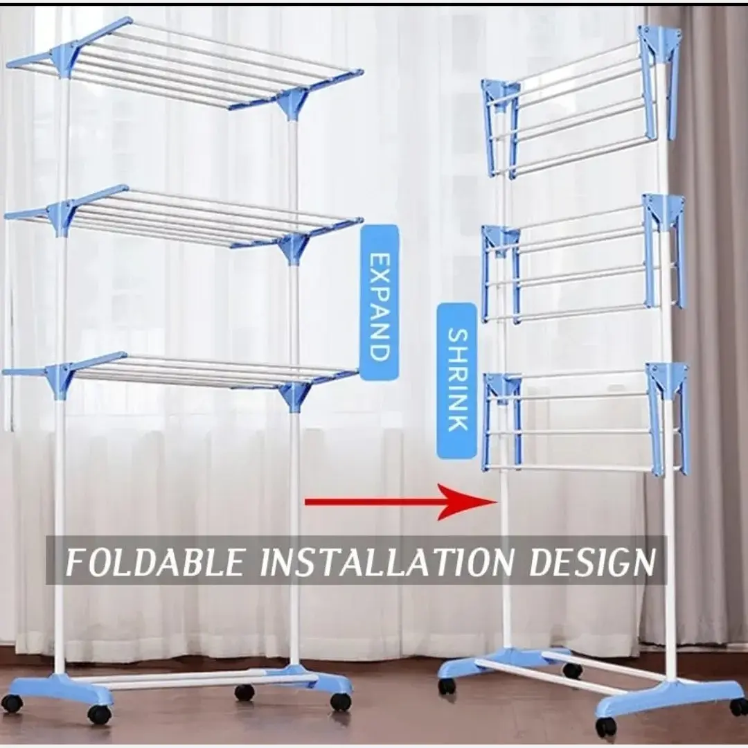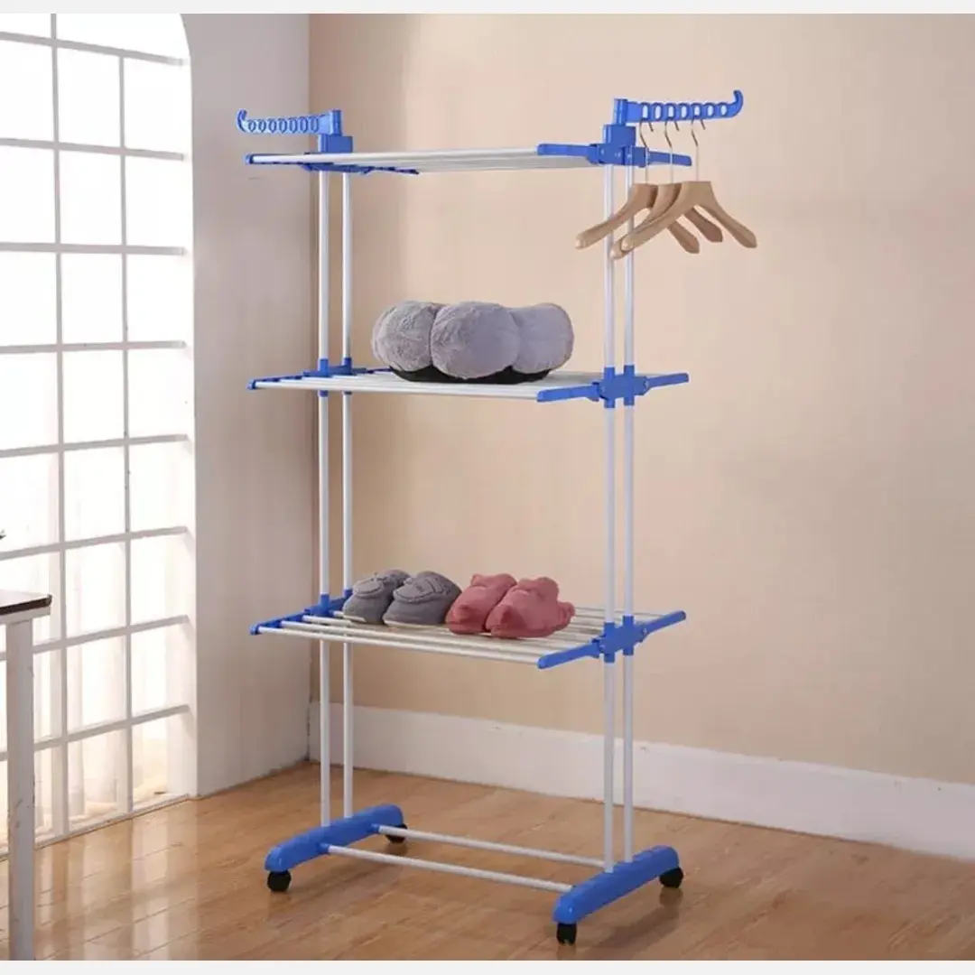 Rack Estante de secado de ropa de 3 niveles con 2 brazos colgantes adicionales, la forma de los ganchos superiores colgantes es conveniente.