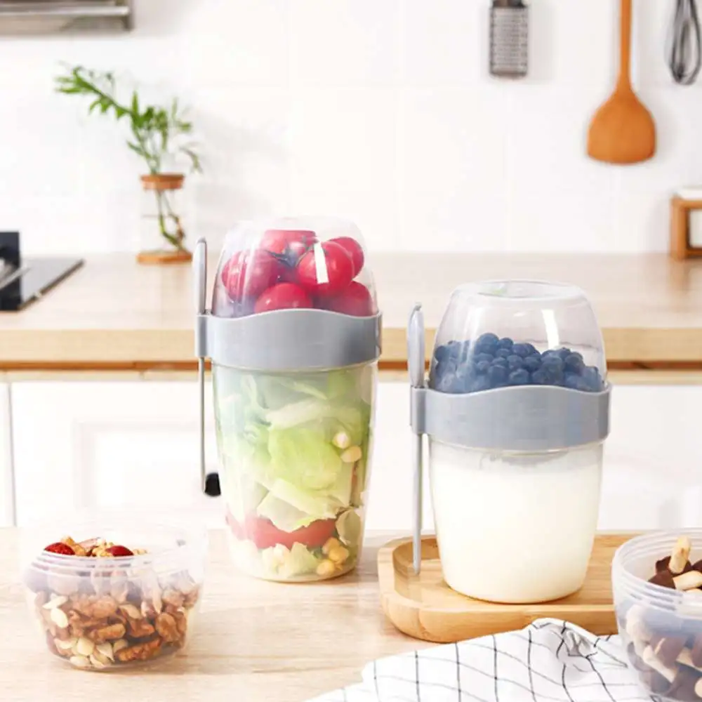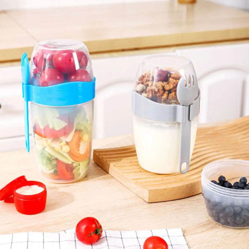Vaso Mezclador Porta Ensaladas Frutas Cereales Yogurt mas Tenedor, Taza de ensalada de doble capa, taza portátil de reducción de grasa para oficina, capacidad extra grande, con tenedor, taza de viaje para frutas y verduras
