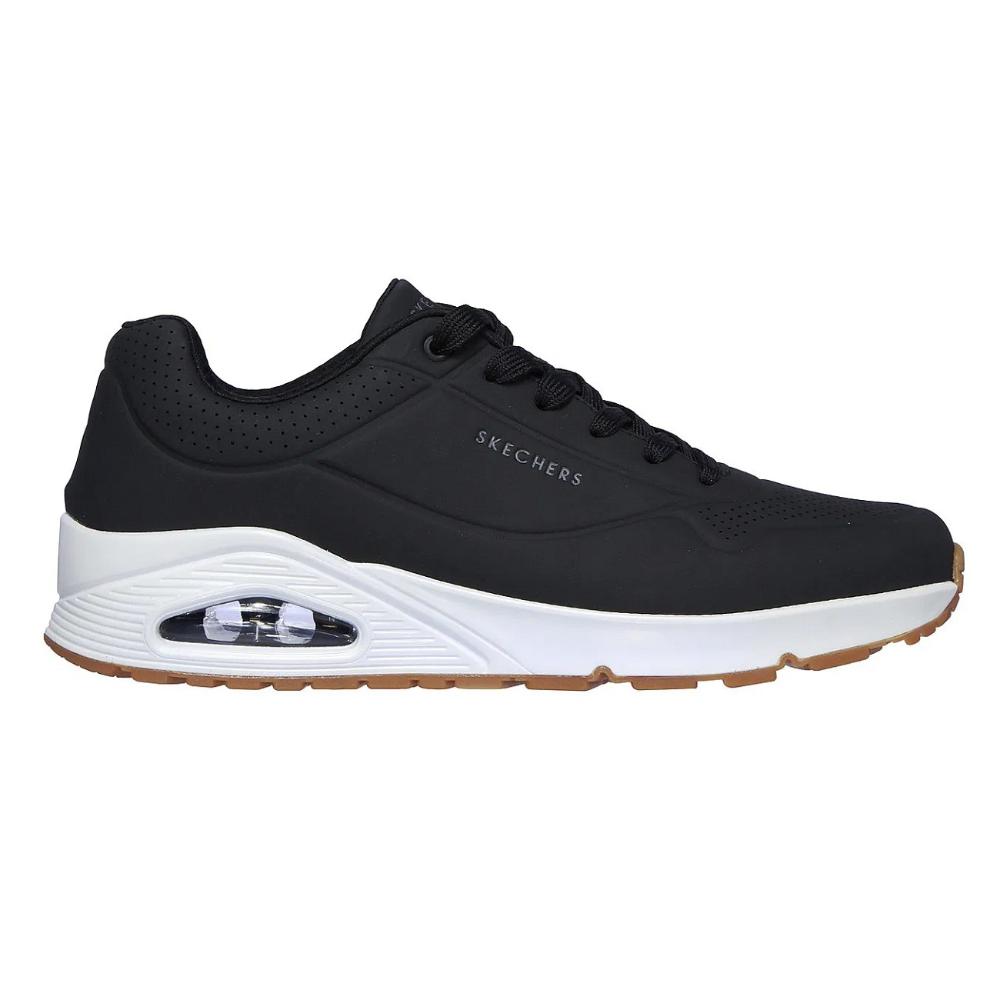 Un clásico icónico recibe una actualización fresca con Skechers Street® Street Uno – Stand on Air. Esta zapatilla de moda con cordones presenta una parte superior perforada de material sintético suave, una plantilla acolchada Skechers Air-Cooled Memory Foam® y una entresuela con bolsa de aire visible Skech-Air®.